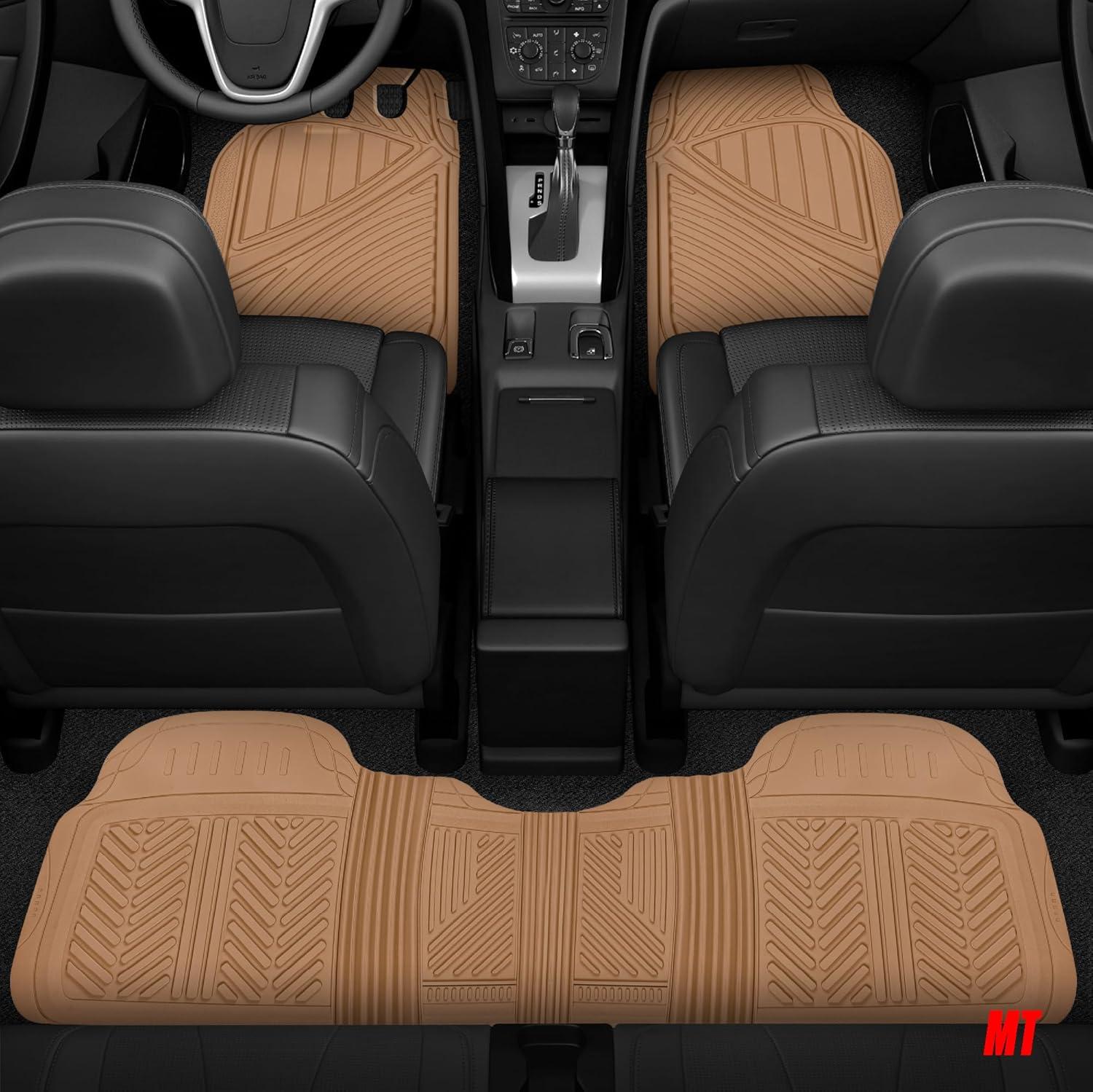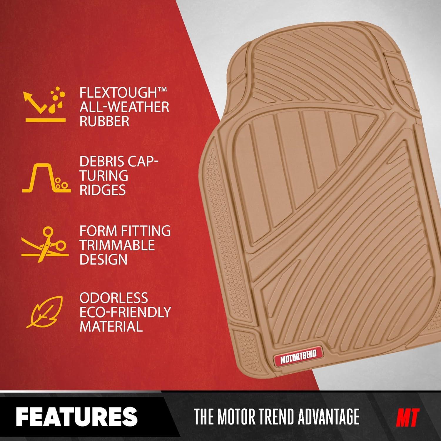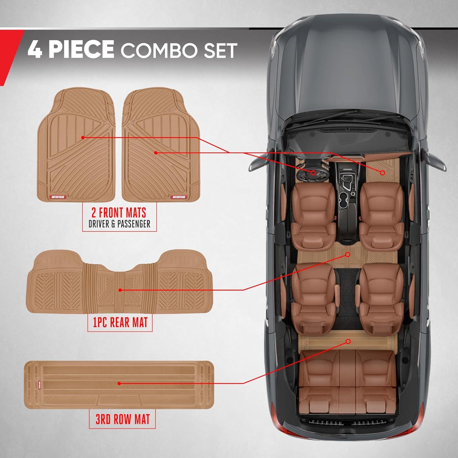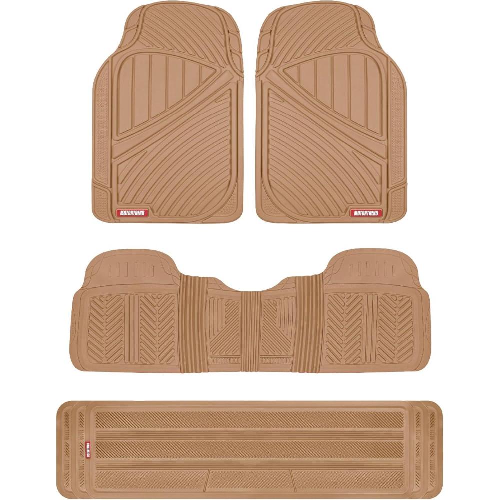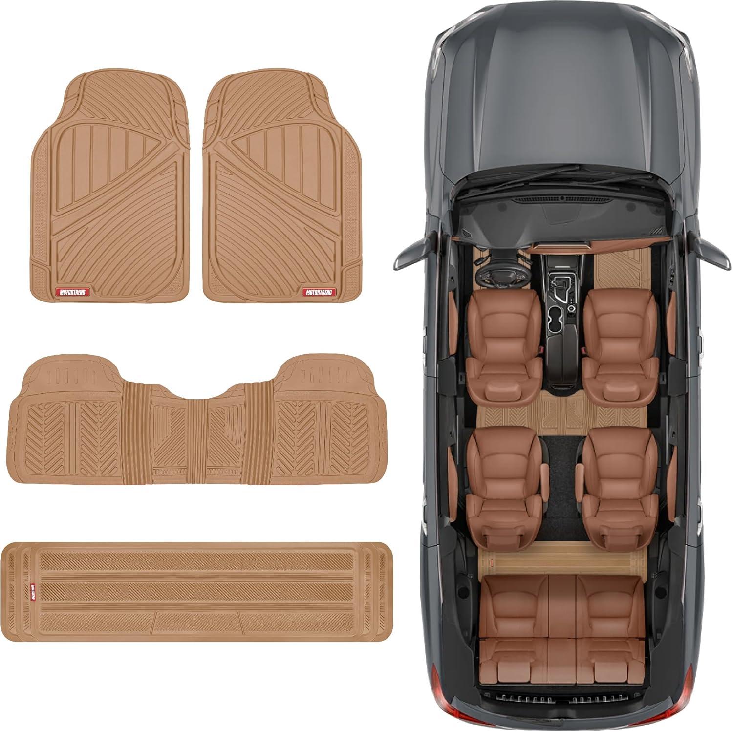 Motor Trend 3 Row Odorless Rubber Floor Mats & Liners for Car SUV Van, Durable Heavy Duty Polymerized Latex Full Interior Protection, Extra-High Ridgeline Design, Black, Model Number: MT-773-801-BK(Beige)