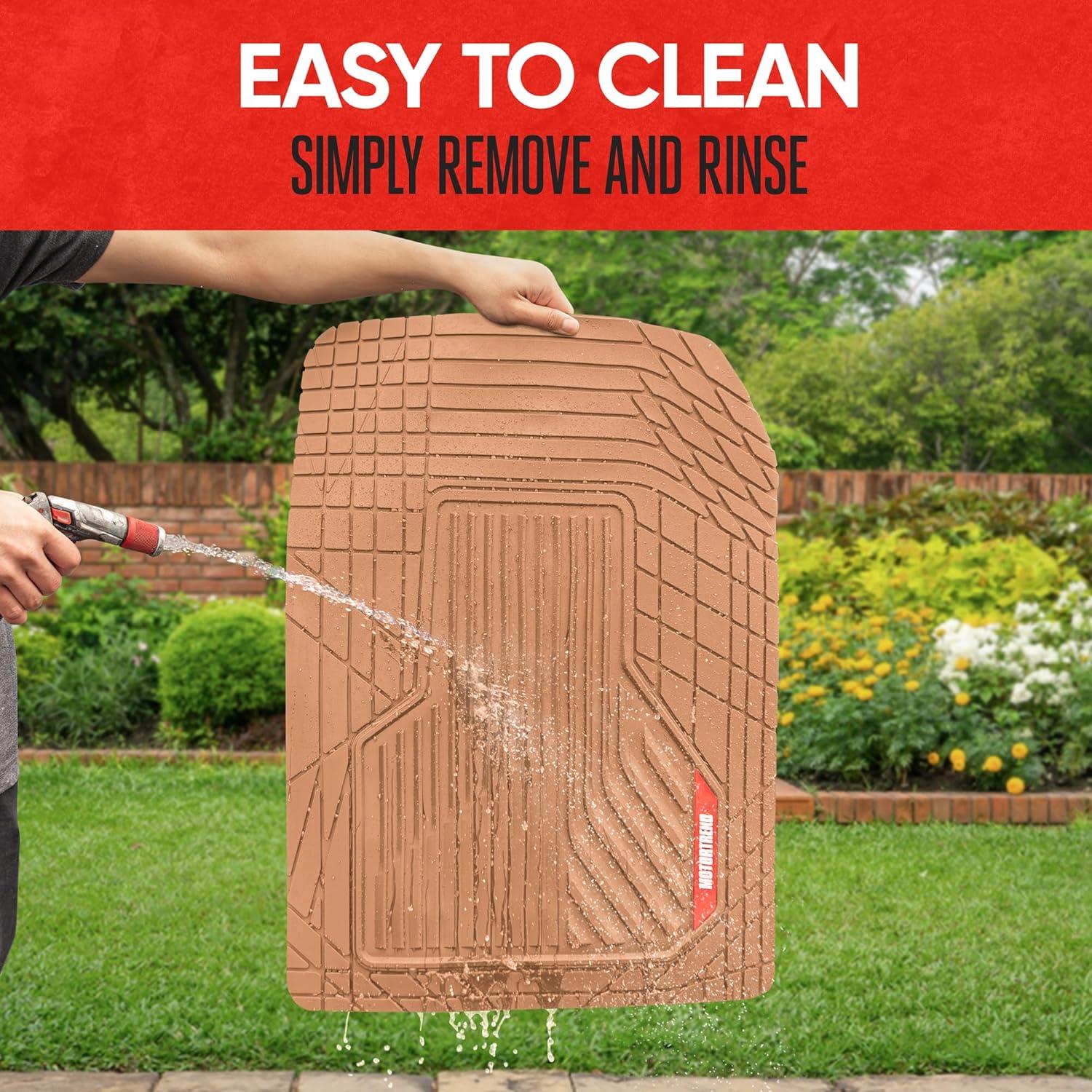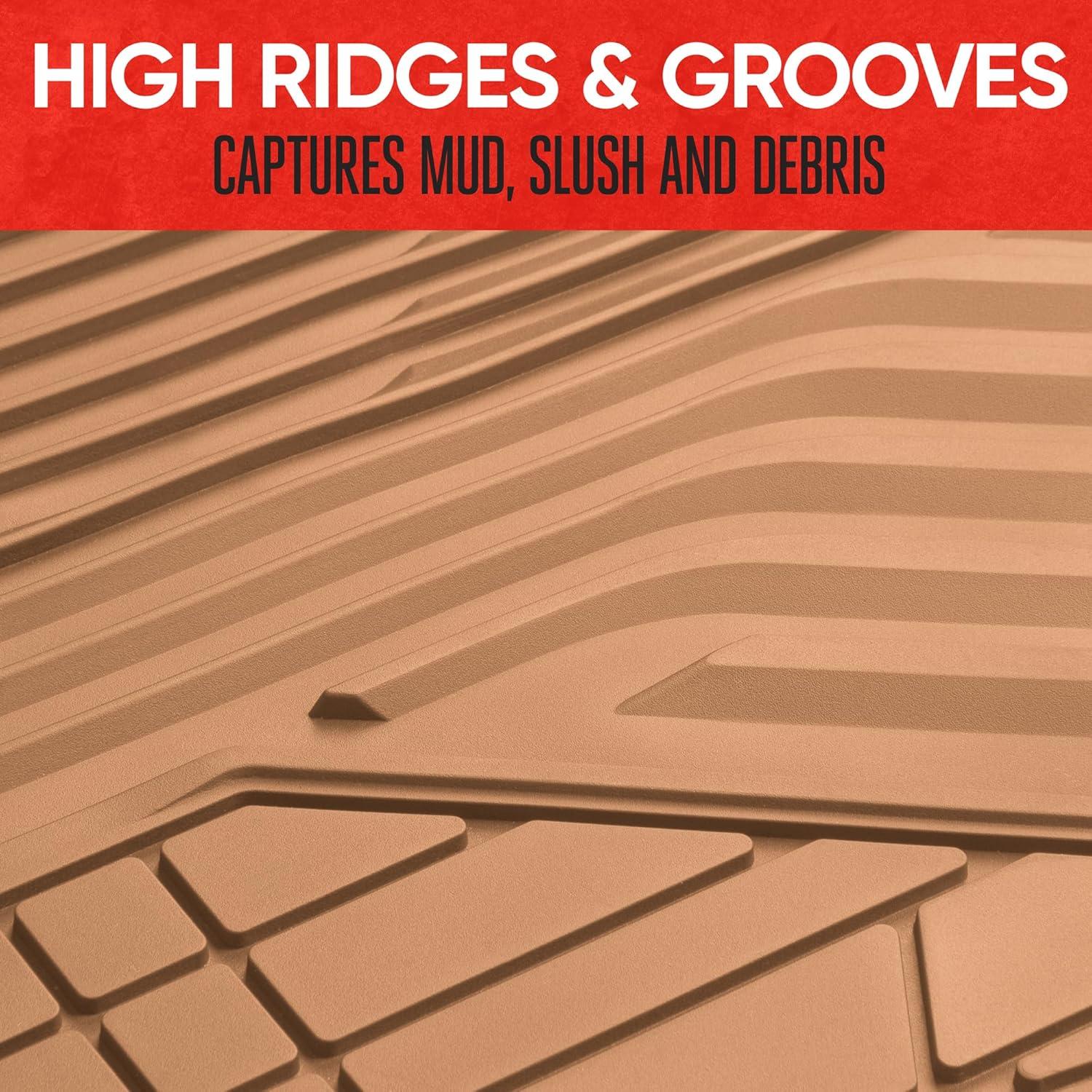 Motor Trend AdventureMax Car Floor Mats Full Set - Durable Rubber Floor Mats for Cars with Debris Capture Grooves, All Weather Interior Protection for Front and Rear with Non-Slip Backing, Beige(Beige Tan)