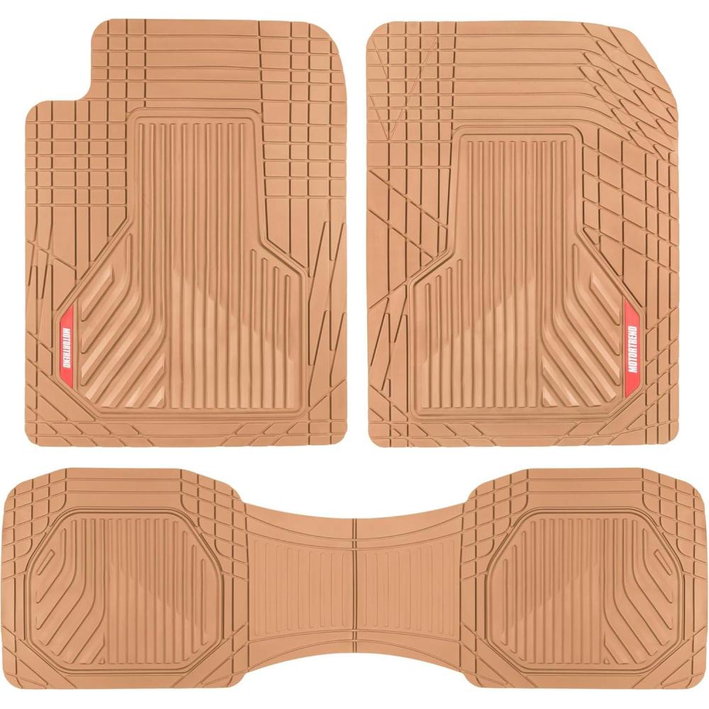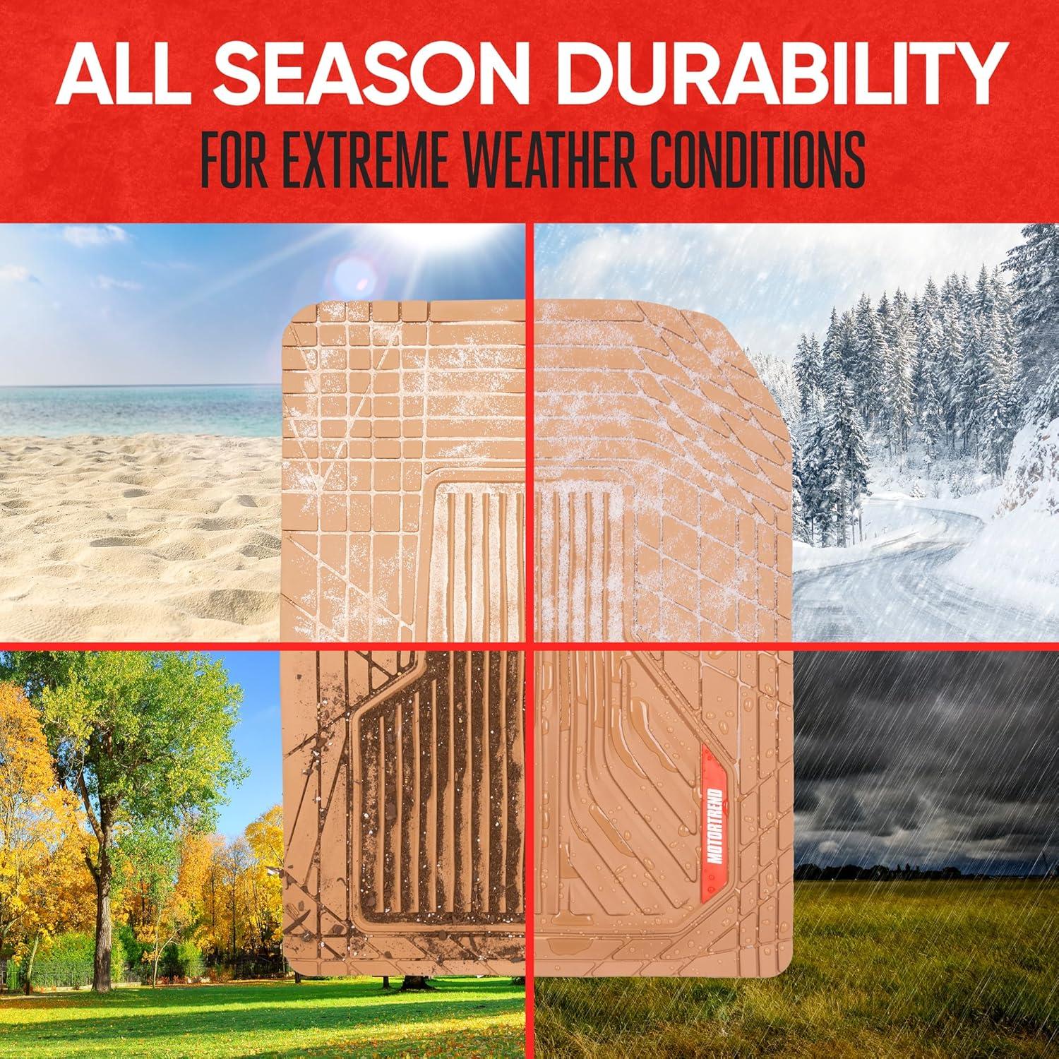 Motor Trend AdventureMax Car Floor Mats Full Set – Durable Rubber Floor Mats for Cars with Debris Capture Grooves, All Weather Interior Protection for Front and Rear with Non-Slip Backing, Beige(Beige Tan)