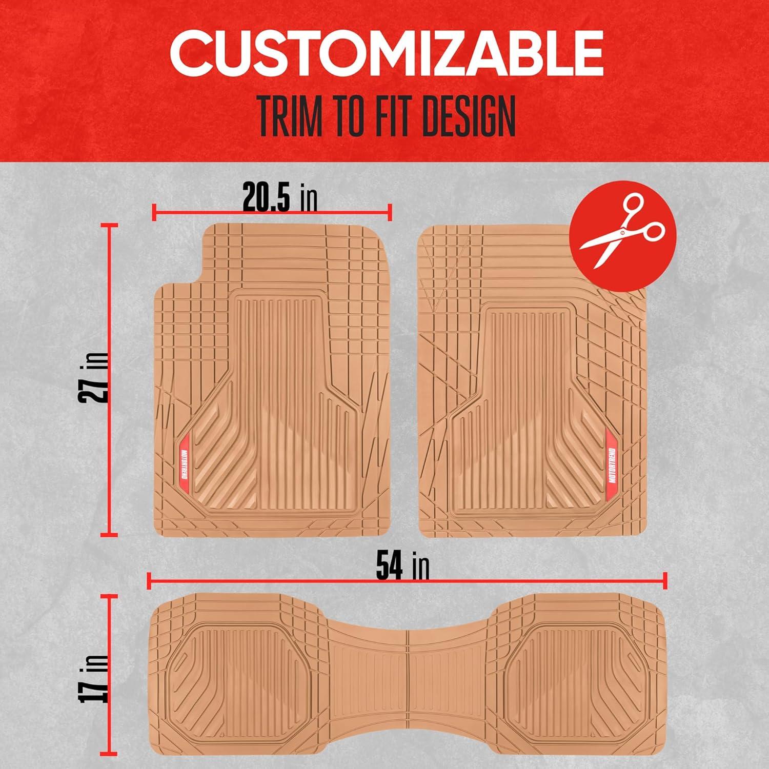 Motor Trend FlexTough 4-Piece Heavy Duty Floor Mats for Cars Trucks SUVs, Automotive Floor Mats Car Mats Full Set Front, Rear & Cargo, Trim-To-Fit Semi-Custom Deep Dish All Weather Rubber Mats – Beige(Beige)