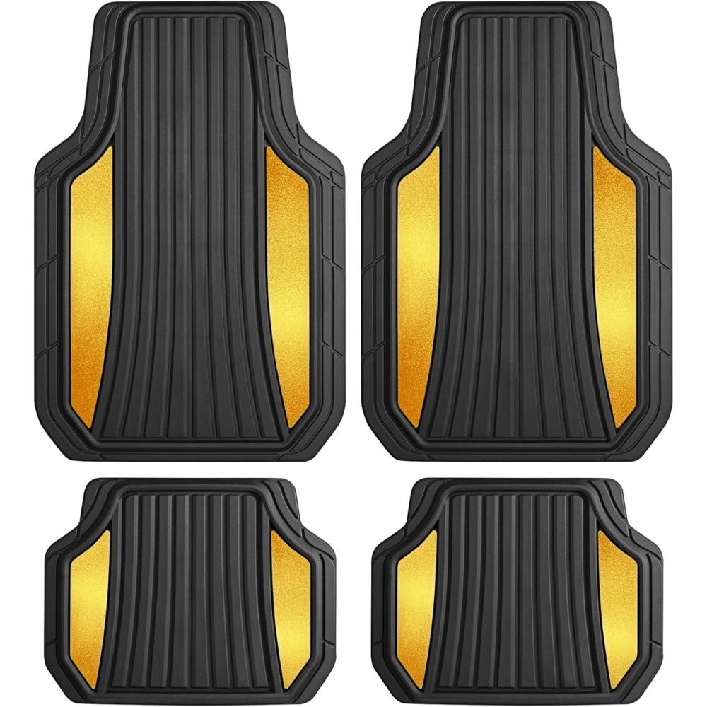 imageMotor Trend ChromeTech Car Floor Mats Full Set  Durable Rubber Floor Mats for Cars with Two Tone Accent All Weather Interior Protection for Front and Rear with NonSlip Backing Silver ChromeBlack  Gold