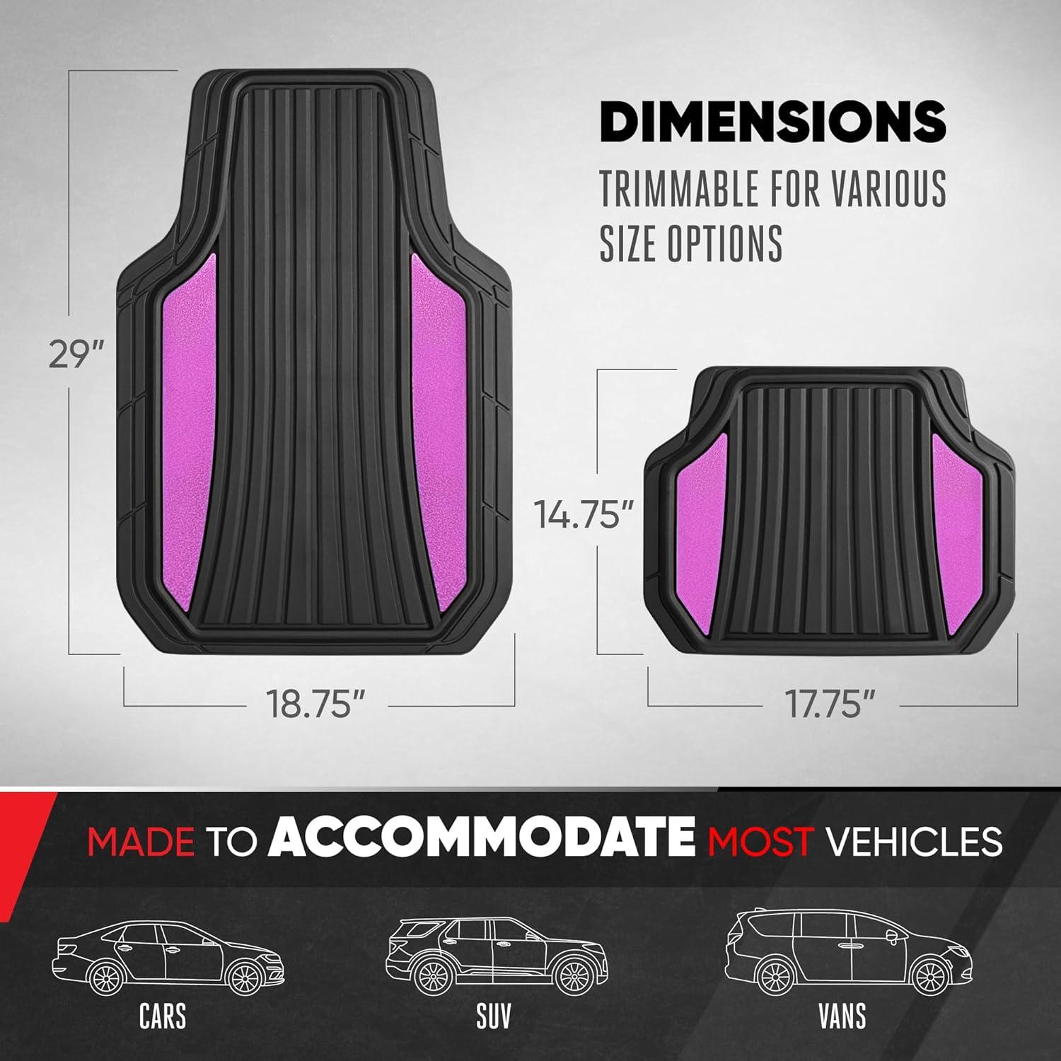 Be the first to review “Motor Trend ChromeTech Car Floor Mats Full Set – Durable Rubber Floor Mats for Cars with Two Tone Accent, All Weather Interior Protection for Front and Rear with Non-Slip Backing, Silver Chrome(Black & Pink)”