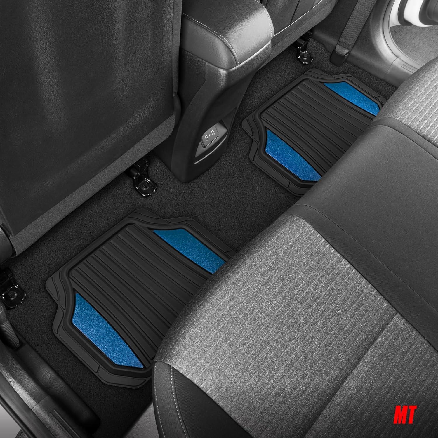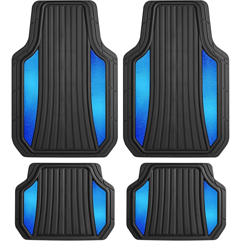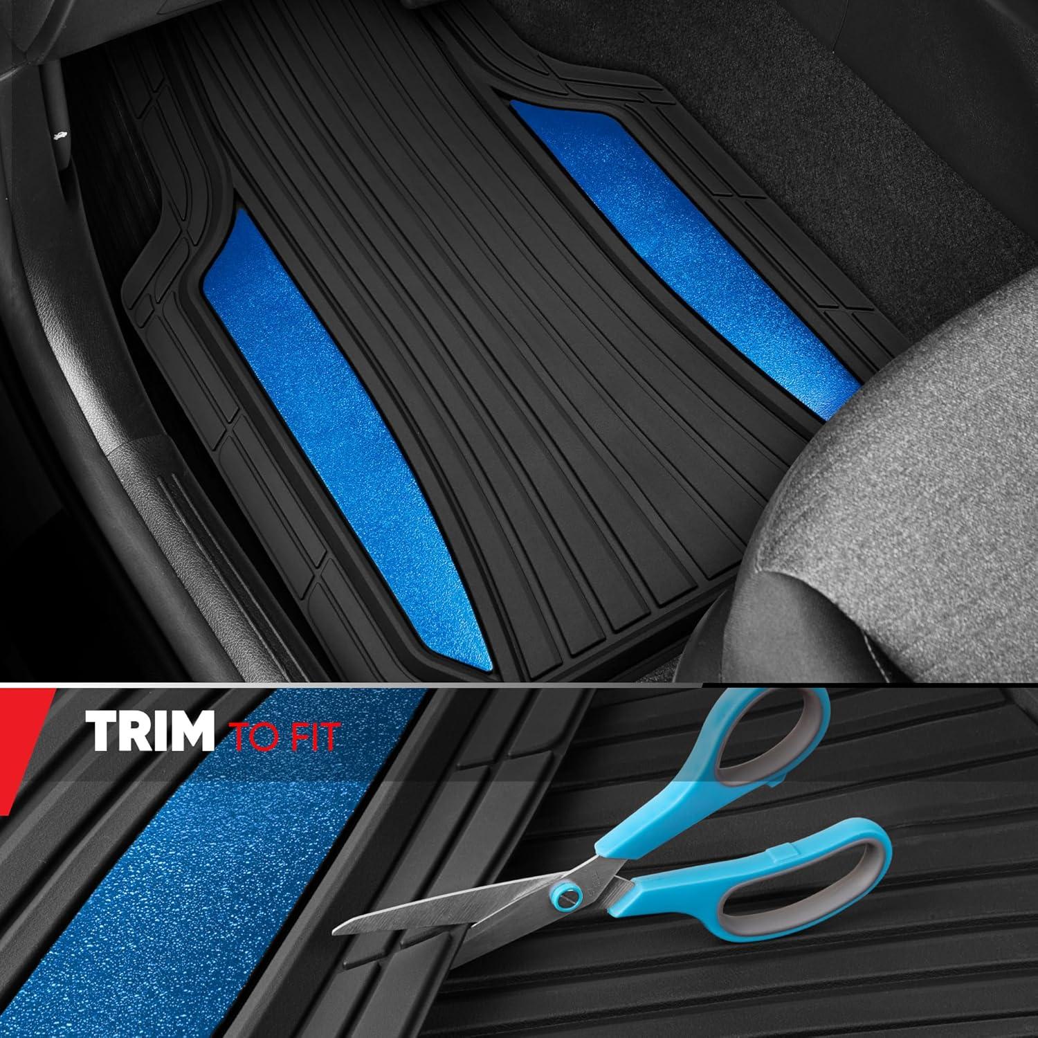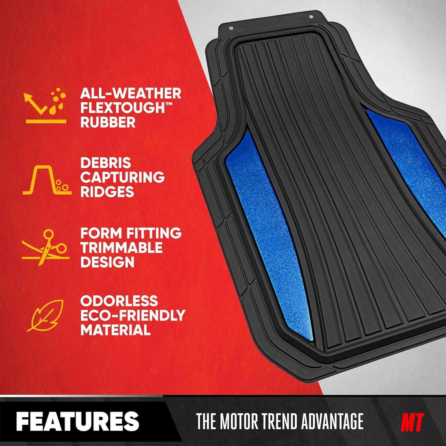 Motor Trend ChromeTech Car Floor Mats Full Set - Durable Rubber Floor Mats for Cars with Two Tone Accent, All Weather Interior Protection for Front and Rear with Non-Slip Backing, Silver Chrome(Black & Blue)