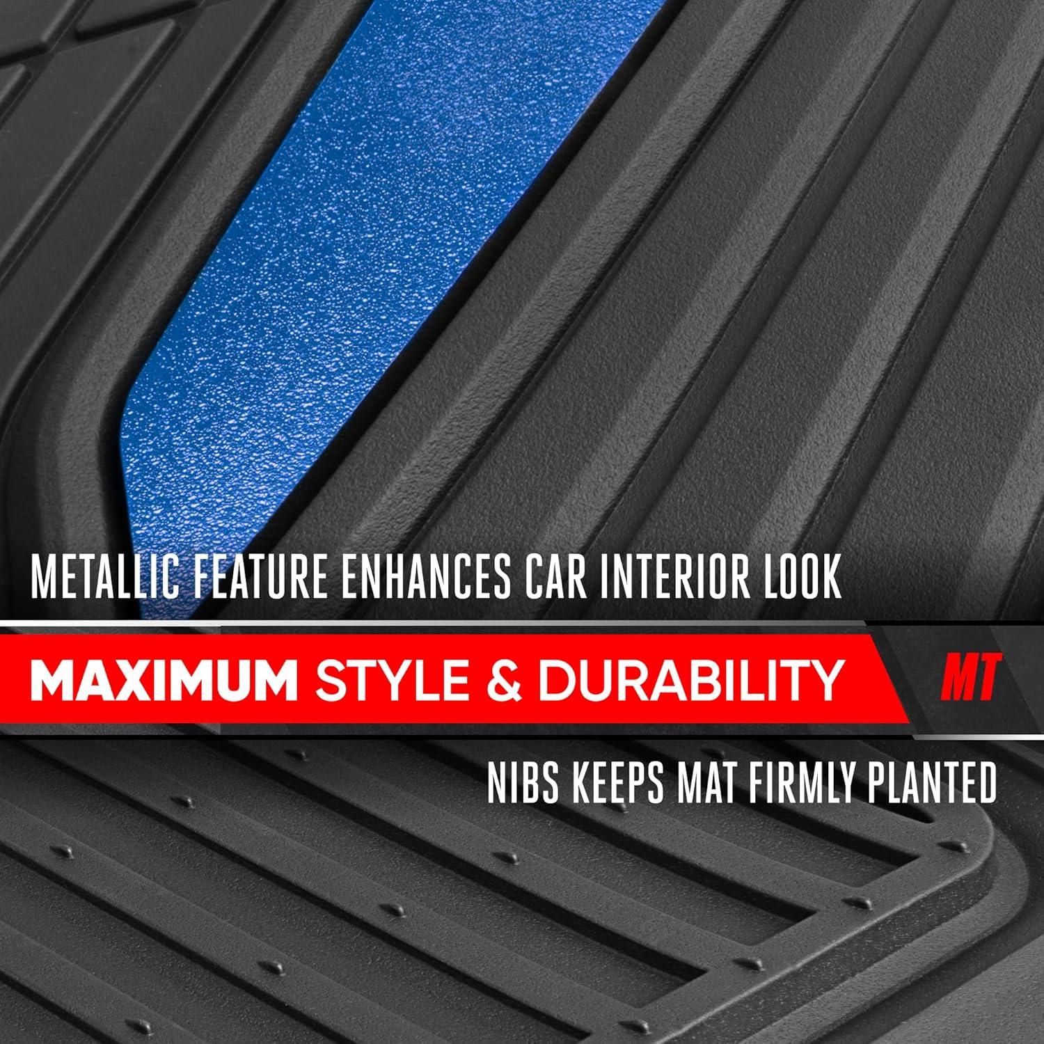 Motor Trend ChromeTech Car Floor Mats Full Set – Durable Rubber Floor Mats for Cars with Two Tone Accent, All Weather Interior Protection for Front and Rear with Non-Slip Backing, Silver Chrome(Black & Blue)