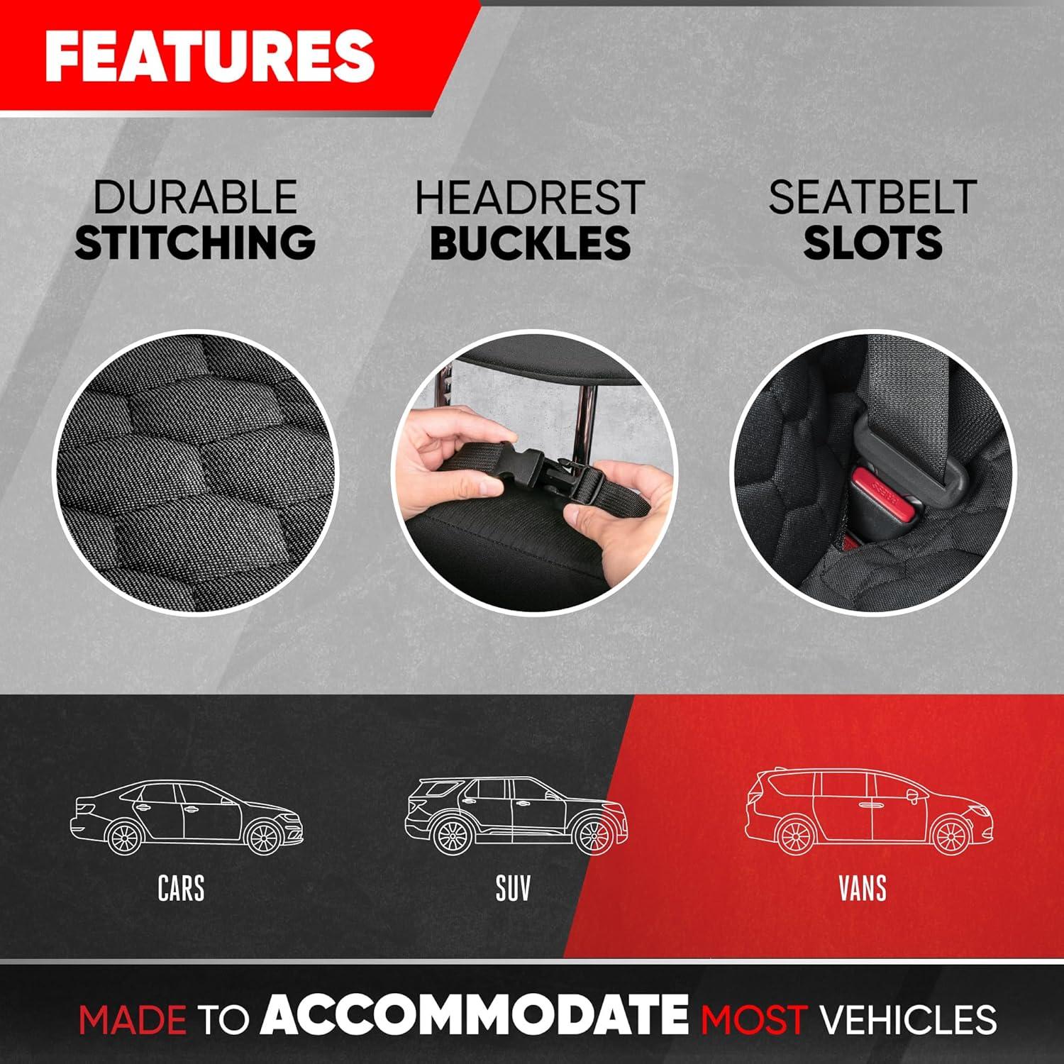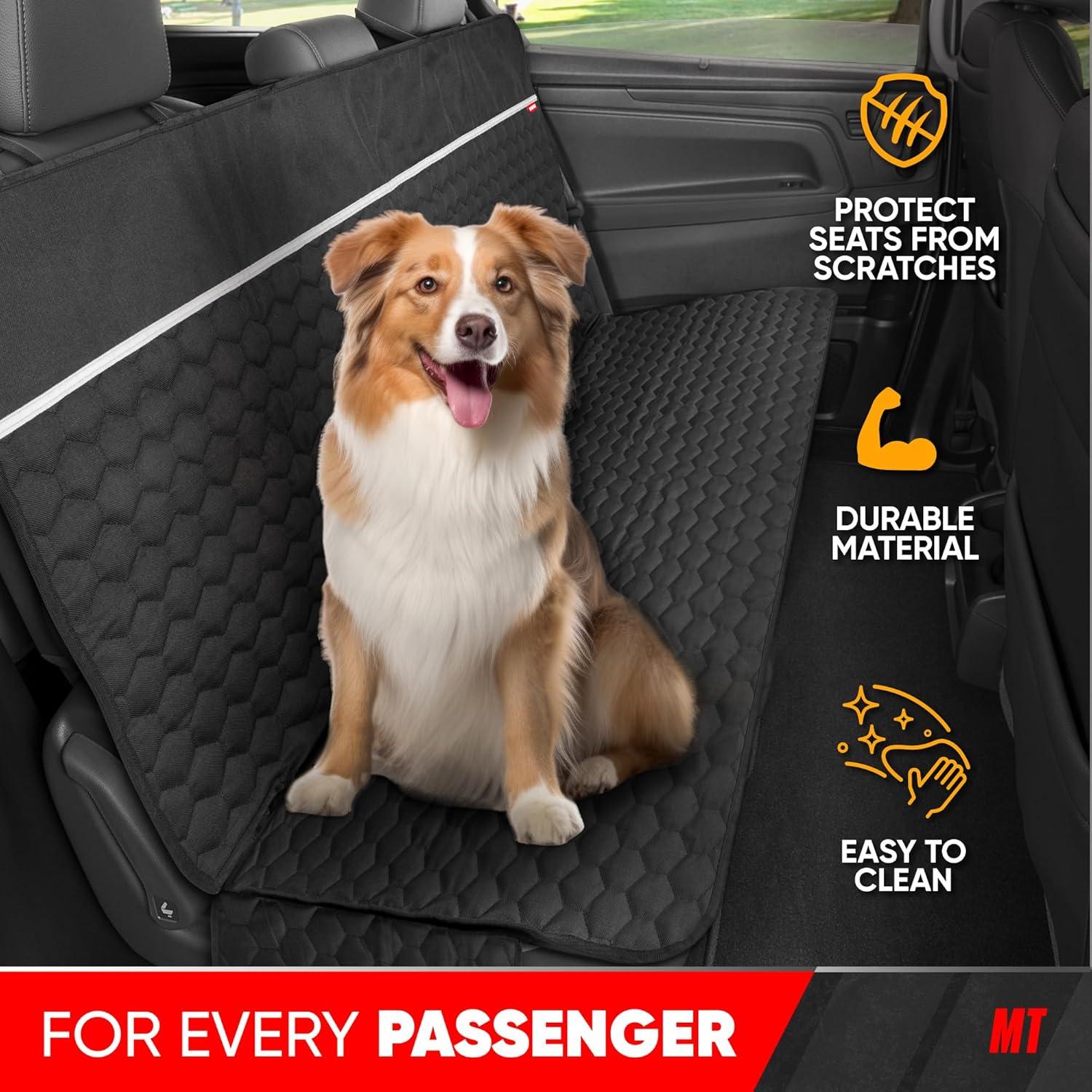 Motor Trend Dog Car Seat Cover for Back Seat - Waterproof Non-Slip Scratch-Resistant Back Seat Pet Cover for Dogs - Universal Fit Dog Accessories for Cars, Trucks, SUV, & Vans - Black(Rear Bench Cover)