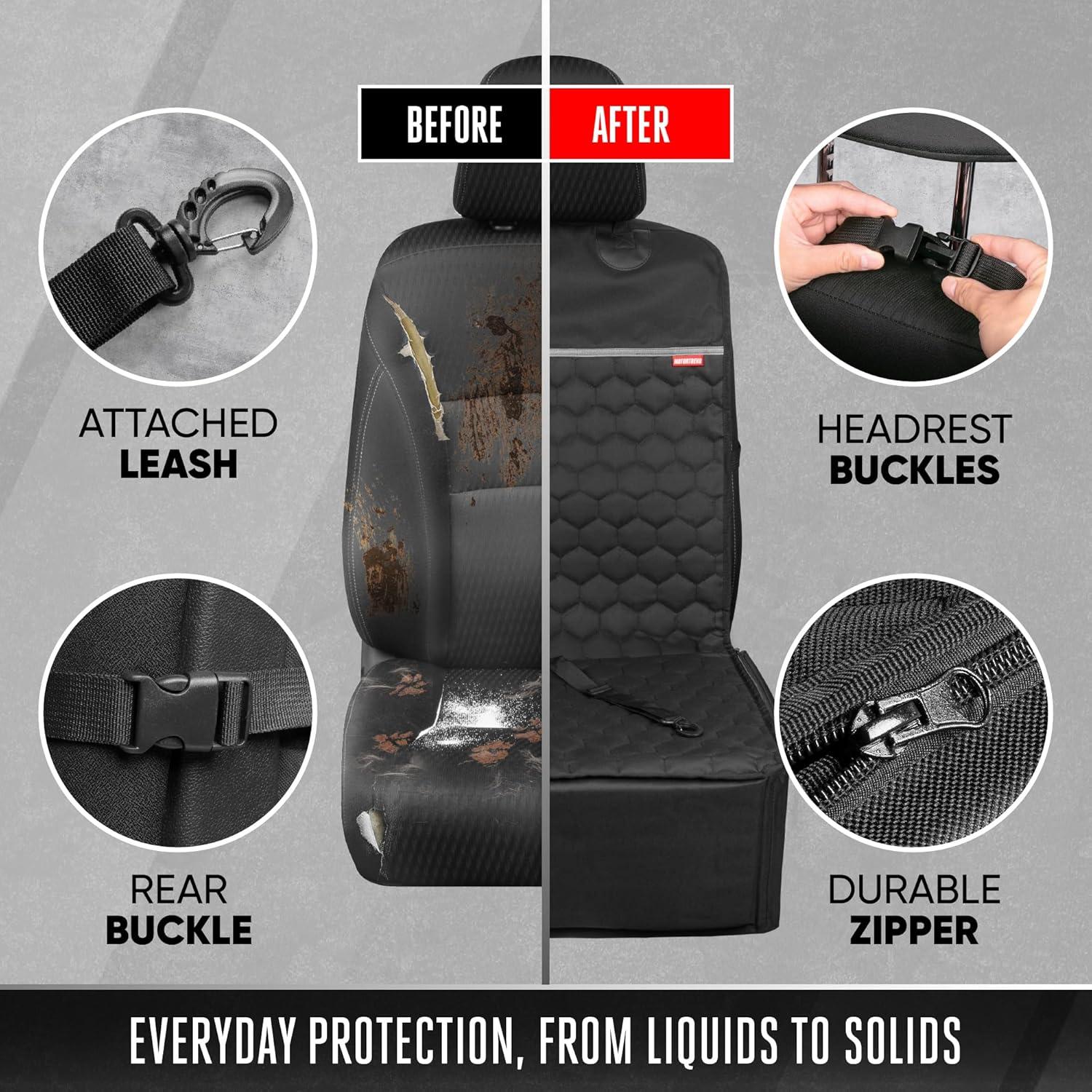 DURABLE PROTECTION: Protect your rear bench seat from pet hair, scratches, and spills with our durable, waterproof dog seat cover. Designed for full coverage, it offers a reliable barrier to keep your car interior clean and damage-free. This high-quality cover ensures lasting protection while making it easy to maintain a tidy and pet-friendly vehicle.