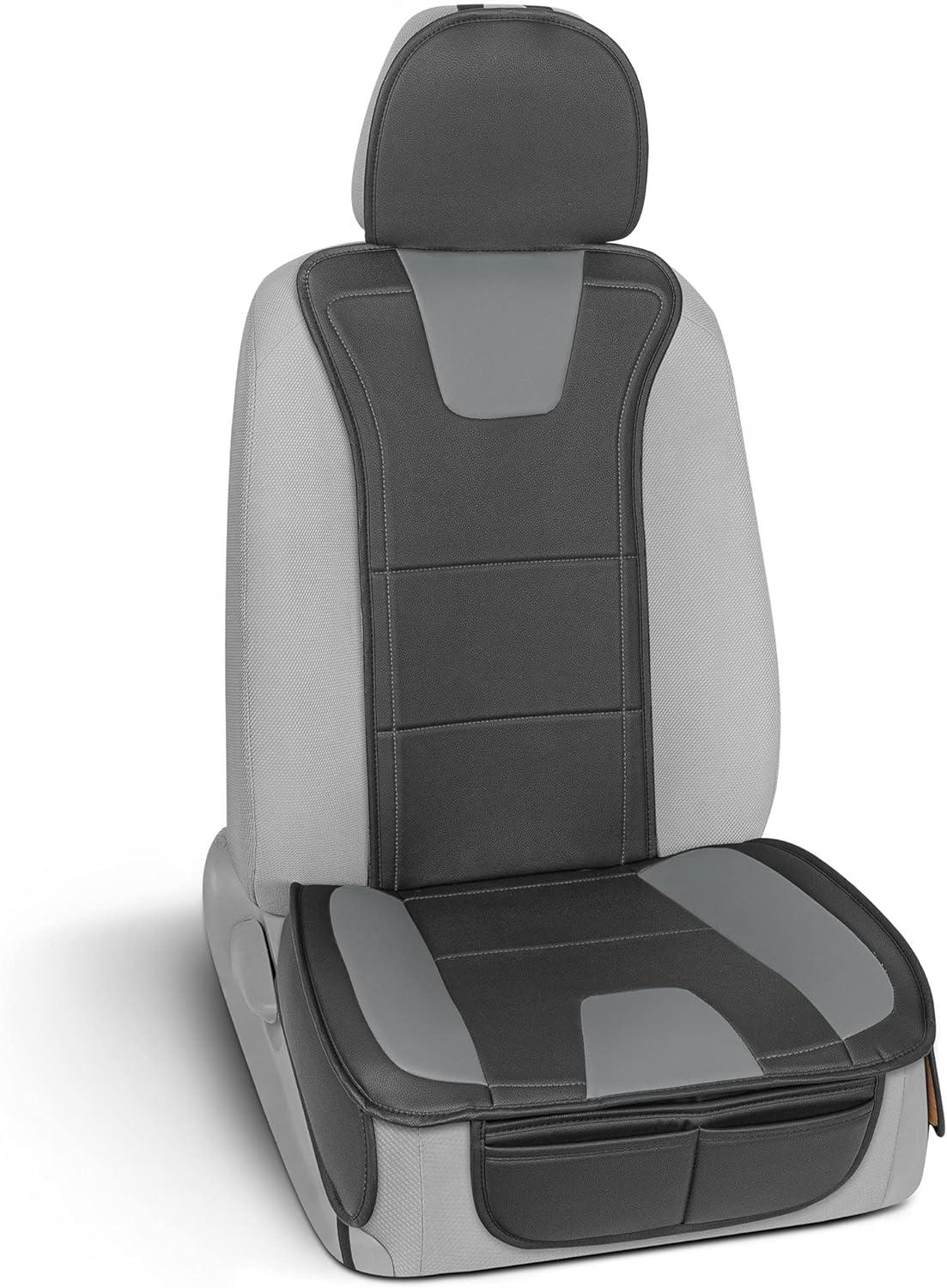 Motor Trend Faux Leather Car Seat Covers, 2 Piece Set – Premium Car Seat Cushions for Front Seats, Padded Car Seat Protectors with Storage Pocket, Seat Covers for Cars Trucks SUV (Gray)