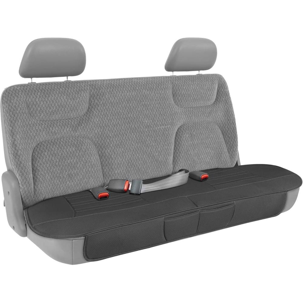 Motor Trend Faux Leather Padded Rear Bench Car Seat Cover With Storage Pockets(Black)