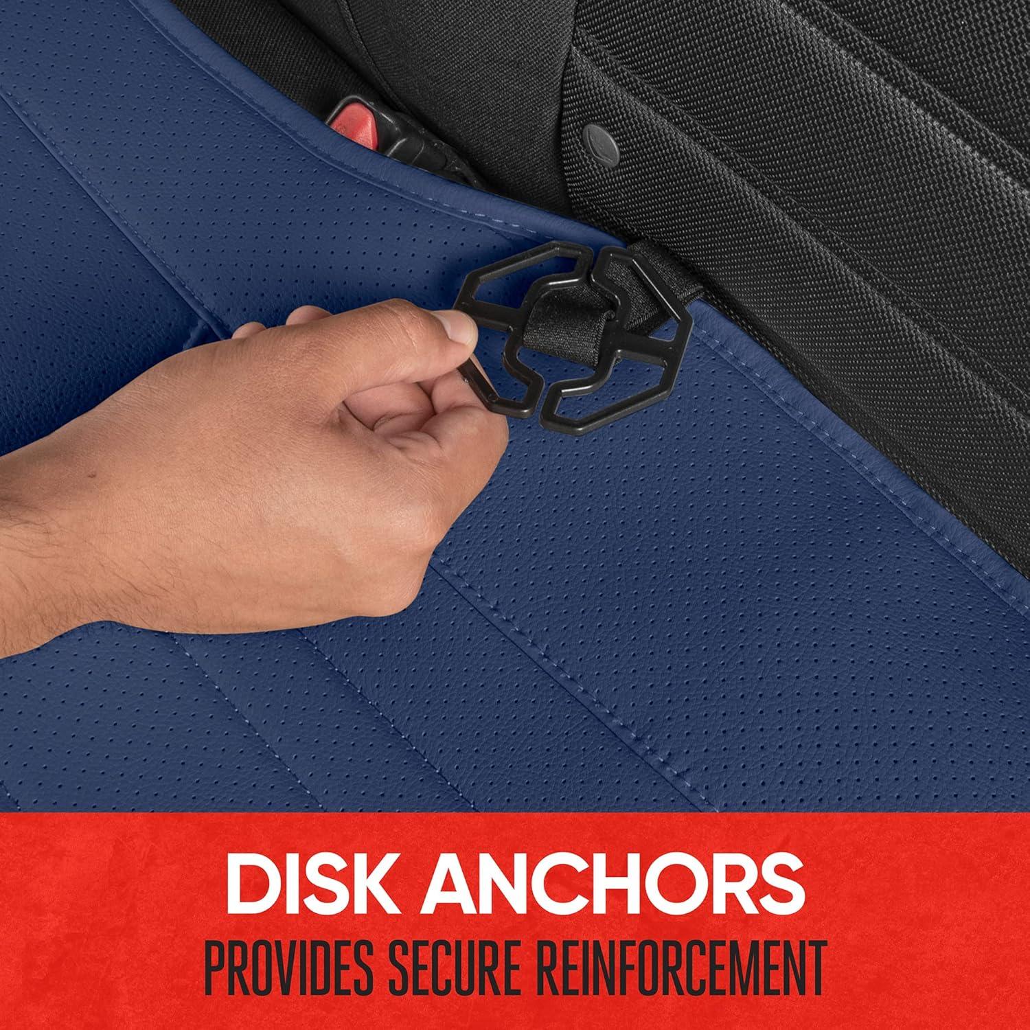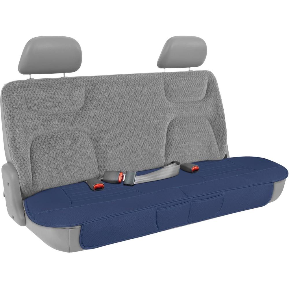 Motor Trend Faux Leather Padded Rear Bench Car Seat Cover With Storage Pockets(Blue)