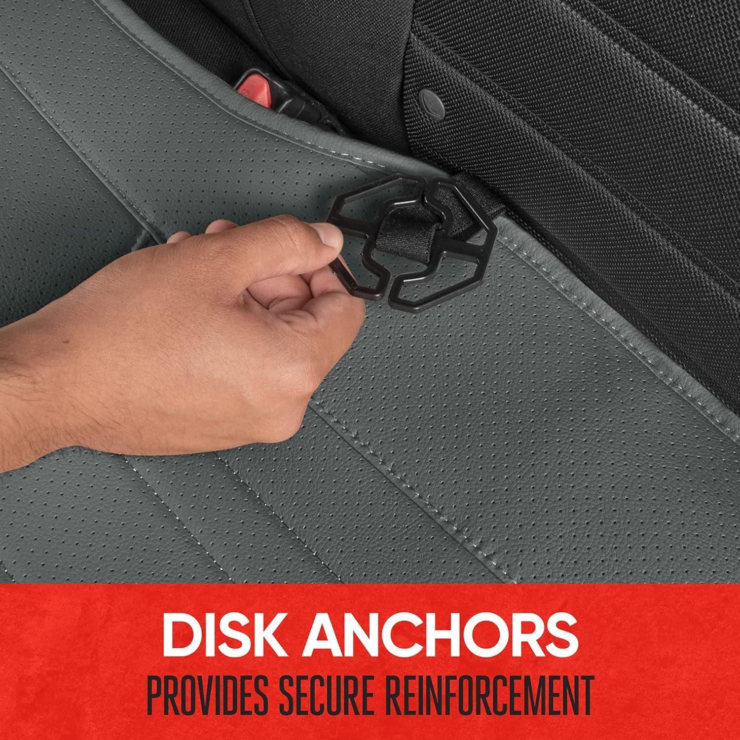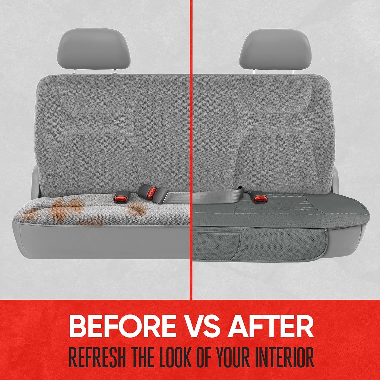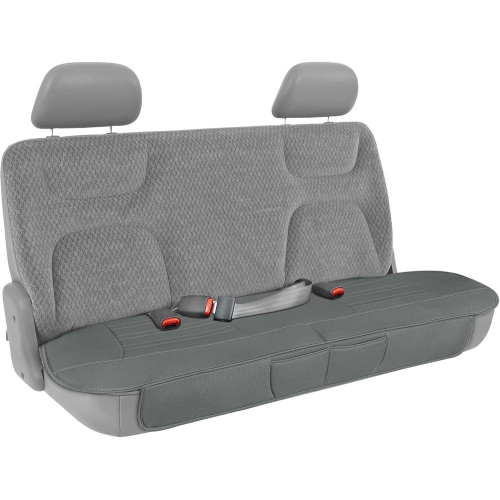 Motor Trend Faux Leather Padded Rear Bench Car Seat Cover With Storage Pockets(Charcoal Gray)
