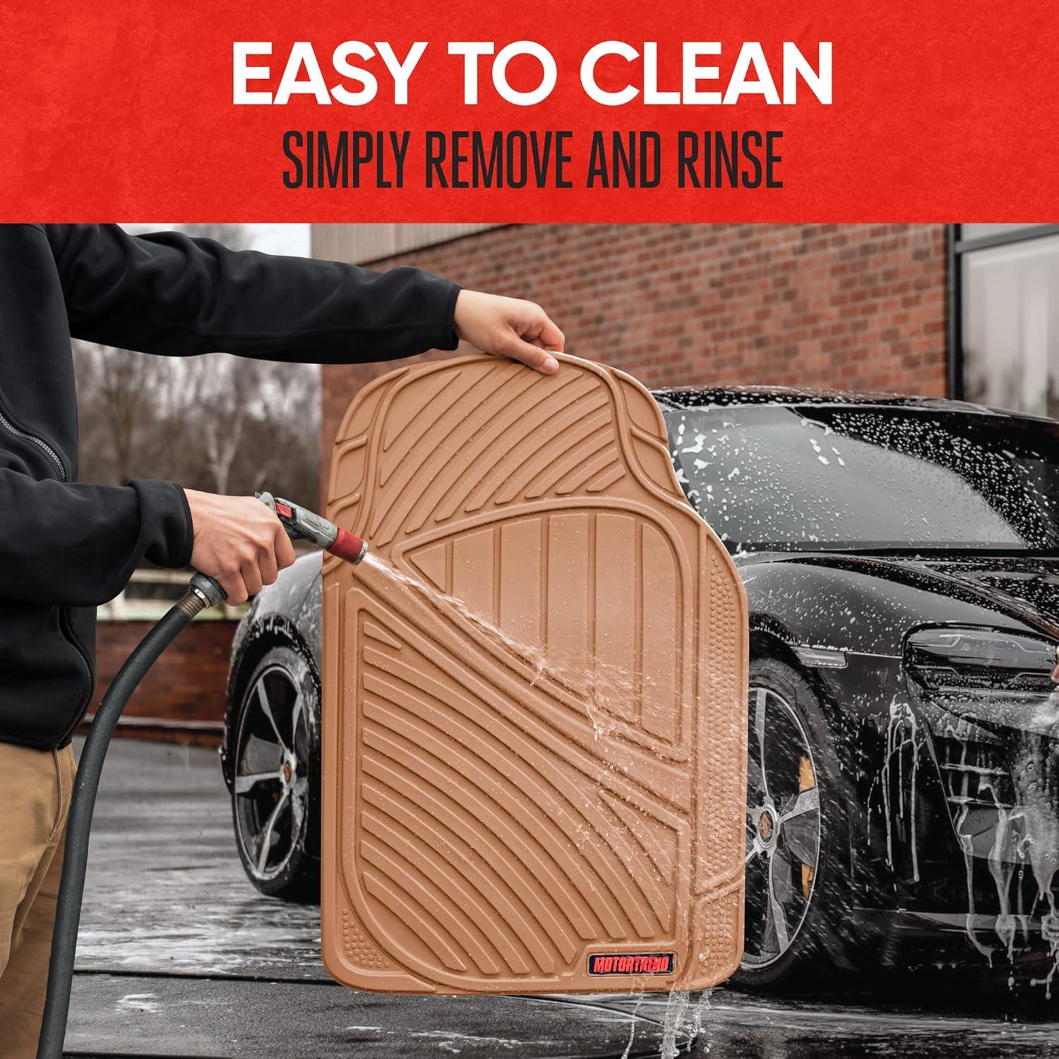 Take your ride to the next level with the Motor Trend FlexTough Performance All Weather Rubber Car Floor Mats—a 3-piece set that offers unbeatable protection, performance, and style. Whether you're driving a car, truck, or SUV, these rubber mats are designed to keep your interior spotless and your style sharp.