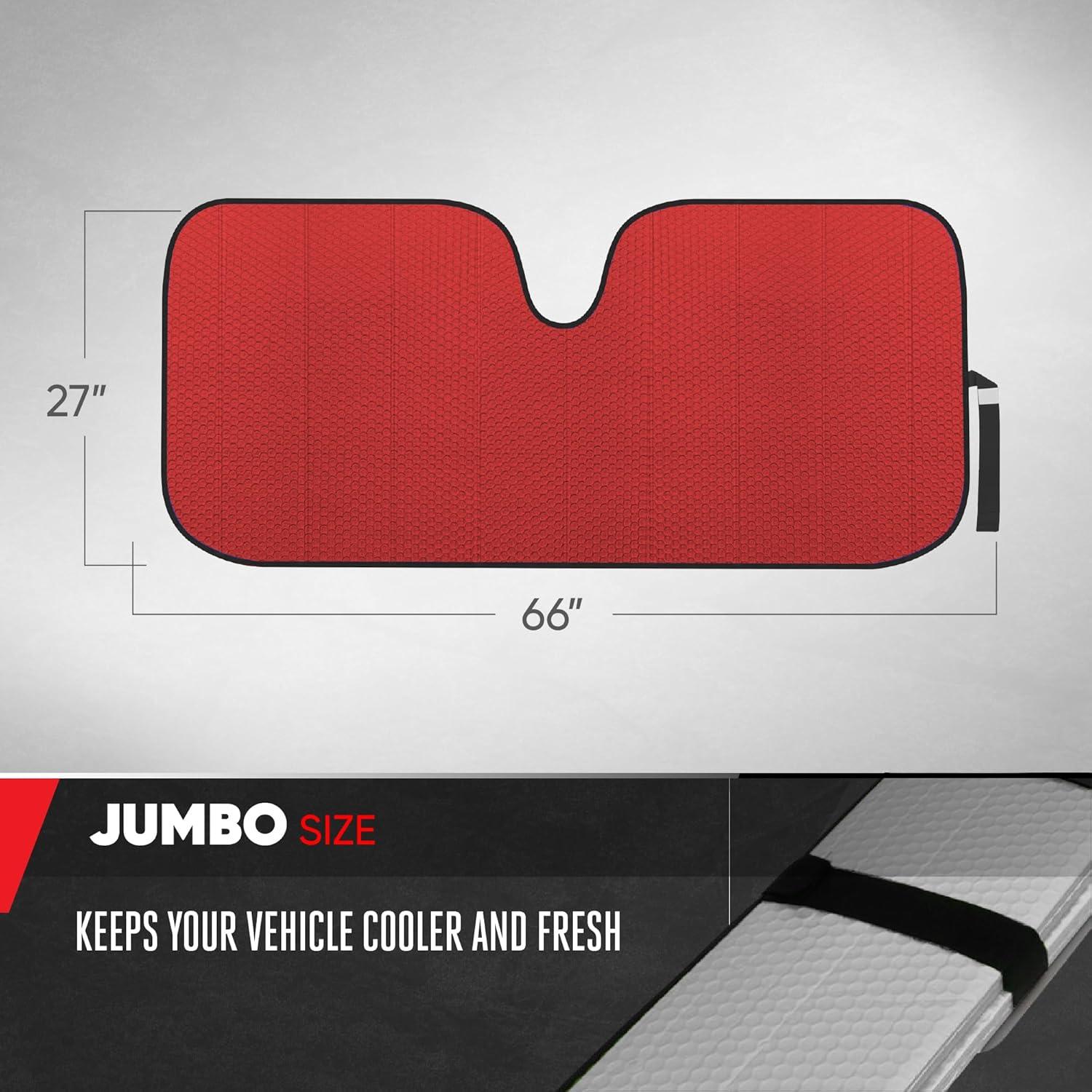 Motor Trend Front Windshield Sun Shade - Accordion Folding Auto Sunshade for Car Truck SUV - Blocks UV Rays Sun Visor Protector - Keeps Your Vehicle Cool - 58 x 24 Inch (Gray)(Red)