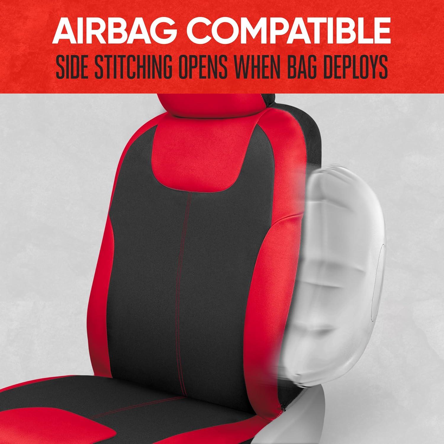Motor Trend Gray Waterproof Seat Covers for Front Seats – Premium Neoprene, Car Seat Protectors with Removable Headrest, Interior Covers for Auto Truck Van SUV(Red Front Seats & Black Mats)