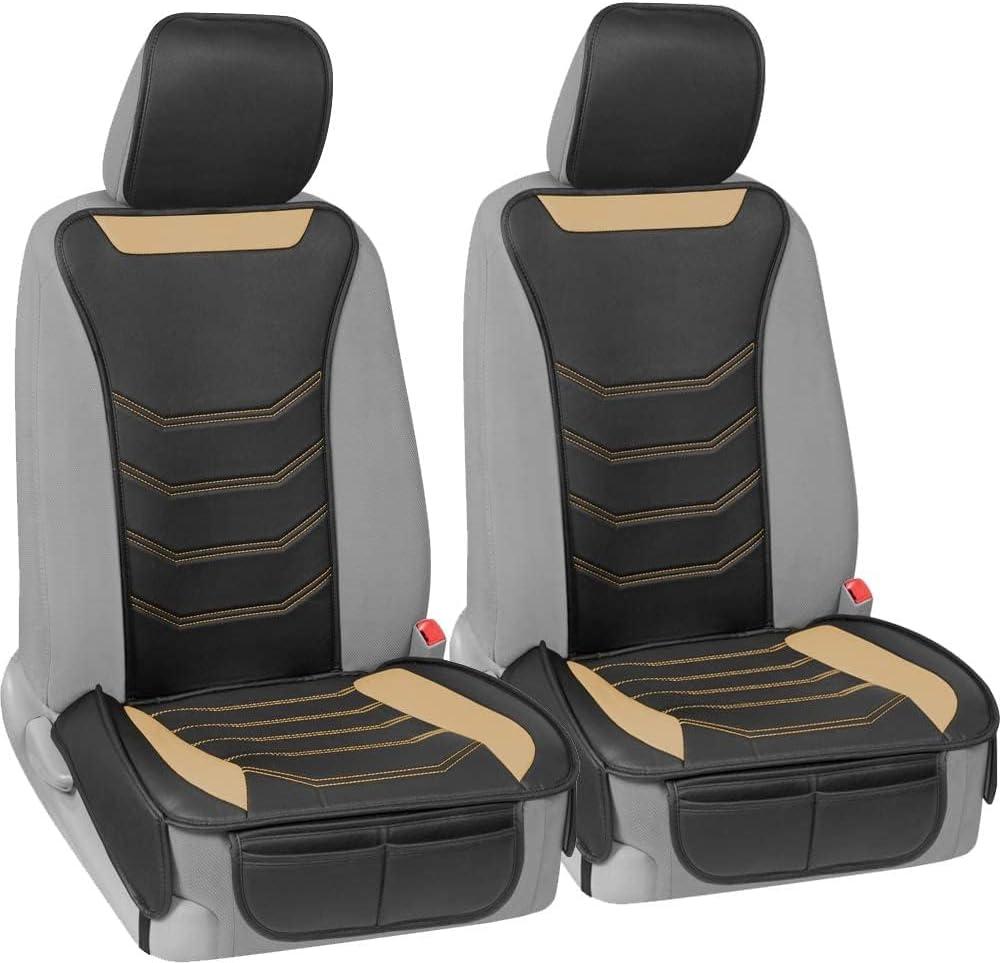 Motor Trend LuxeFit Gray Seat Covers for Cars Trucks Van SUV (2 Pack), Premium Faux Leather, Easy to Install Automotive Seat Covers with Storage Pockets, Fits Most Vehicles(Beige)