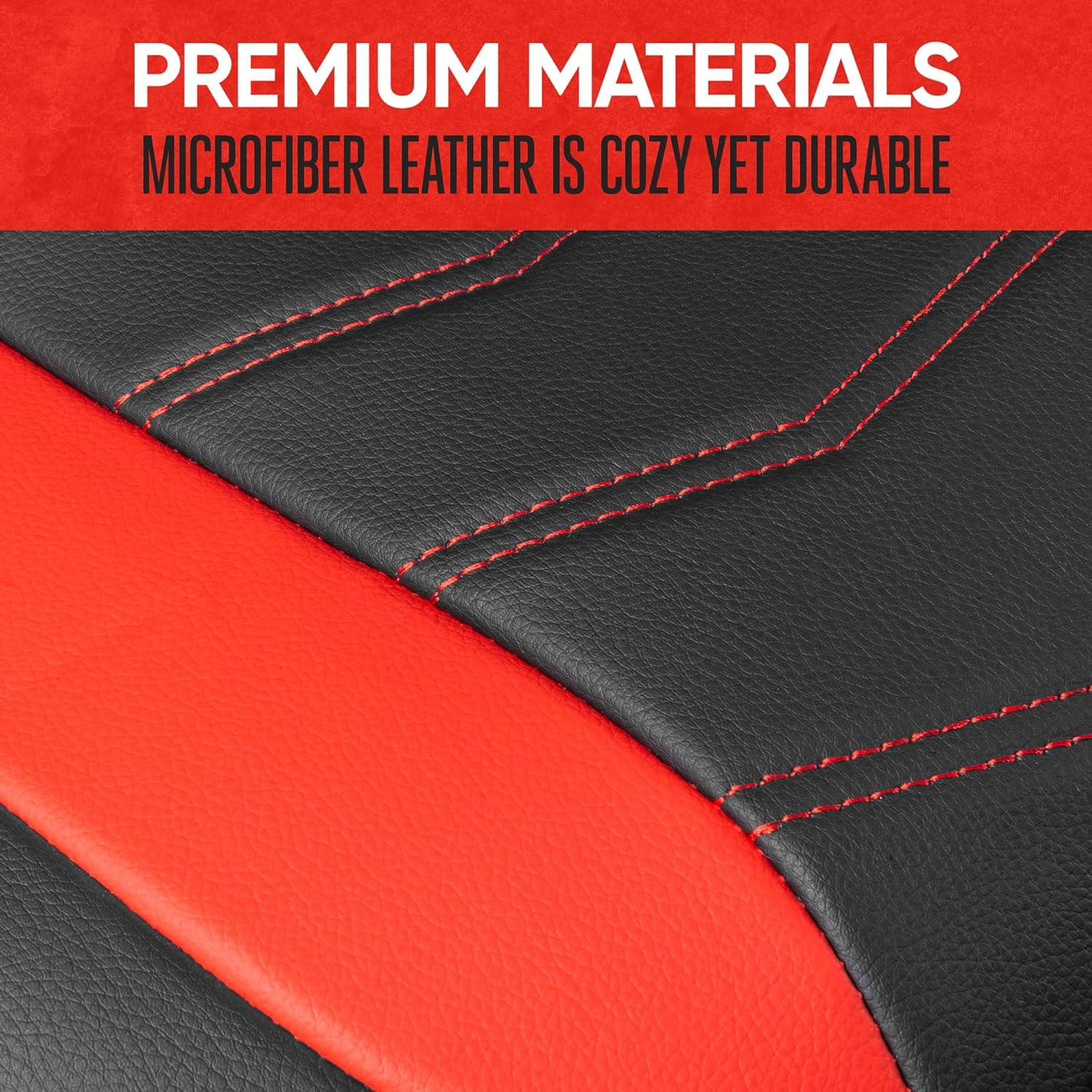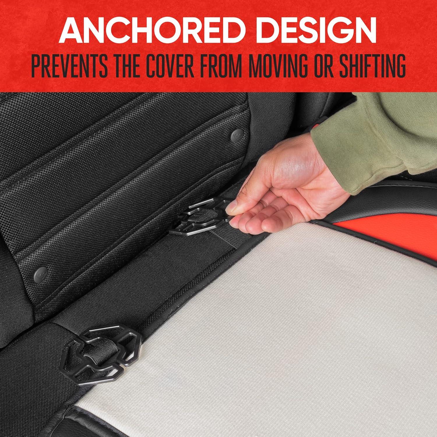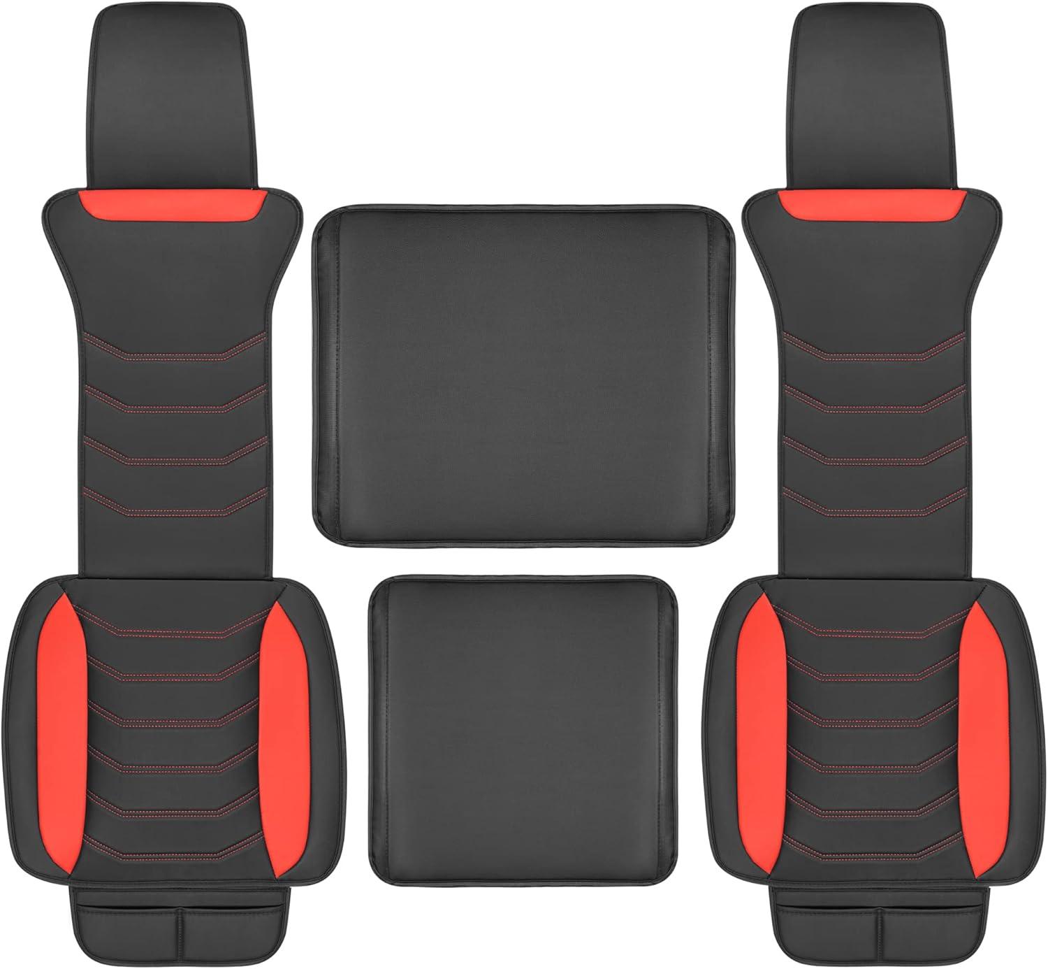 Motor Trend LuxeFit Gray Seat Covers for Cars Trucks Van SUV (2 Pack), Premium Faux Leather, Easy to Install Automotive Seat Covers with Storage Pockets, Fits Most Vehicles(Black/Red)