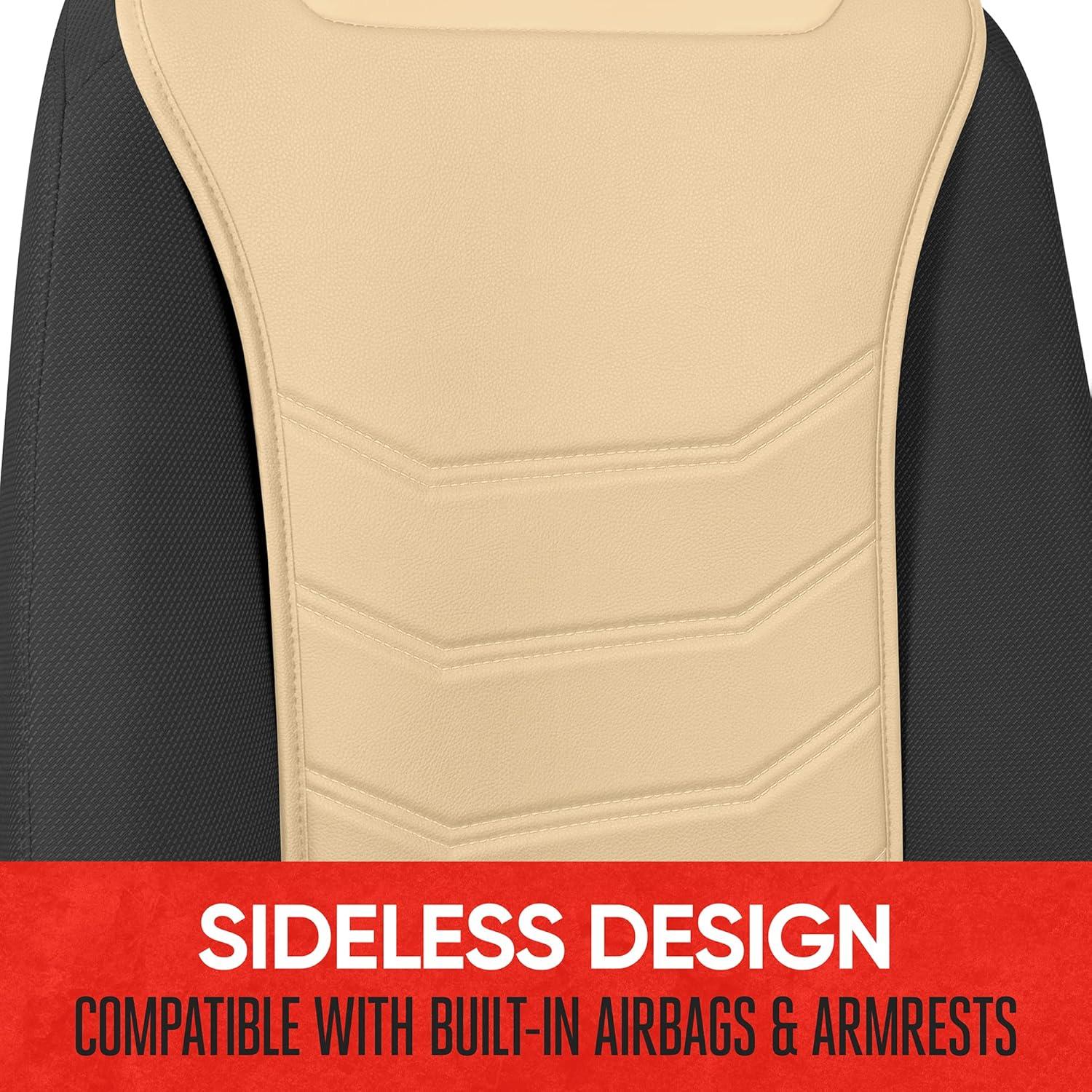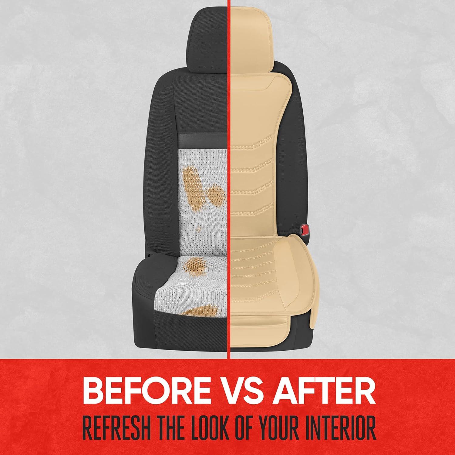 Motor Trend LuxeFit Gray Seat Covers for Cars Trucks Van SUV (2 Pack), Premium Faux Leather, Easy to Install Automotive Seat Covers with Storage Pockets, Fits Most Vehicles(Solid Beige)