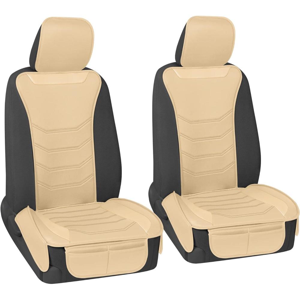 imageMotor Trend LuxeFit Gray Seat Covers for Cars Trucks Van SUV 2 Pack Premium Faux Leather Easy to Install Automotive Seat Covers with Storage Pockets Fits Most VehiclesSolid Beige