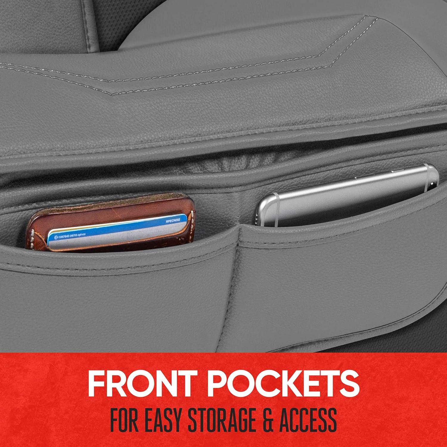 CONVENIENT FRONT POCKETS – Easily store your cellphone, wallet and more using the built-in front pocket. A stitched divider helps to keep your goods organized. You can conveniently add some extra storage and protection for your next trip using our faux leather front seat cover.