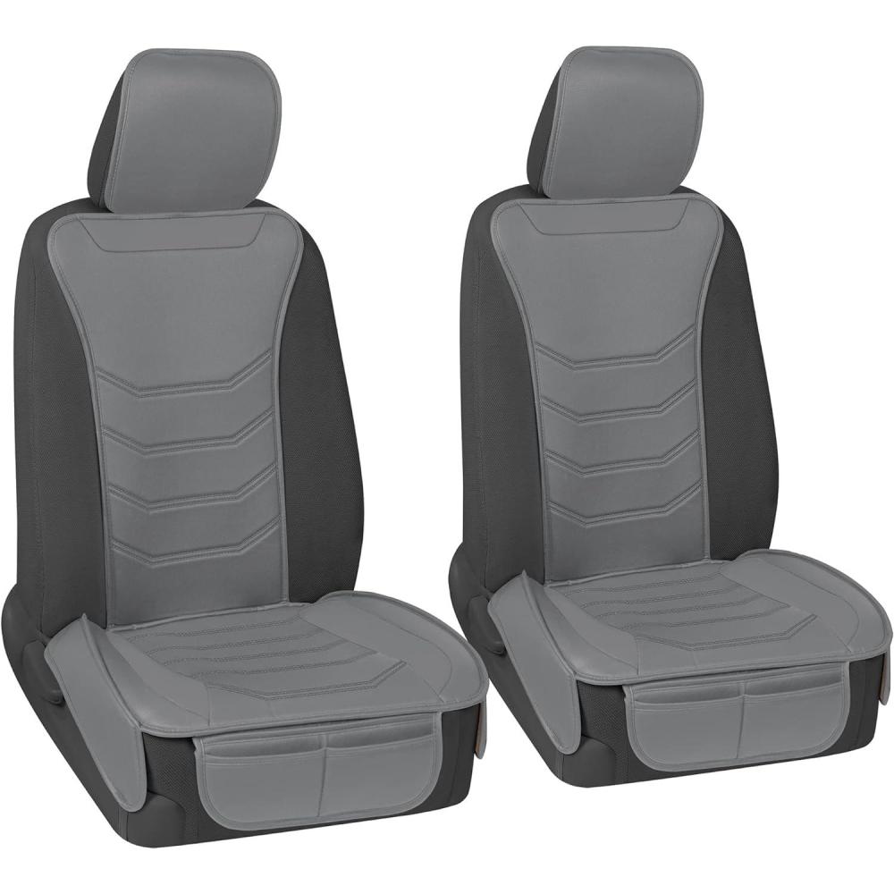 Motor Trend LuxeFit Gray Seat Covers for Cars Trucks Van SUV (2 Pack), Premium Faux Leather, Easy to Install Automotive Seat Covers with Storage Pockets, Fits Most Vehicles(Solid Gray)