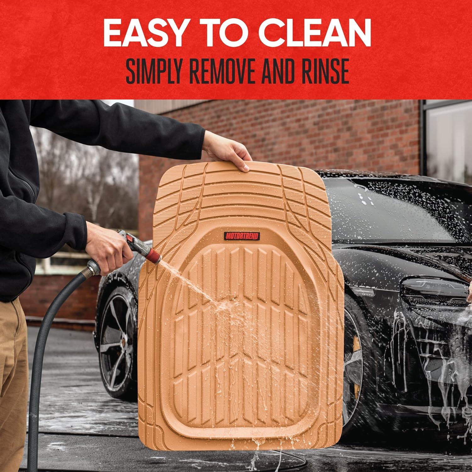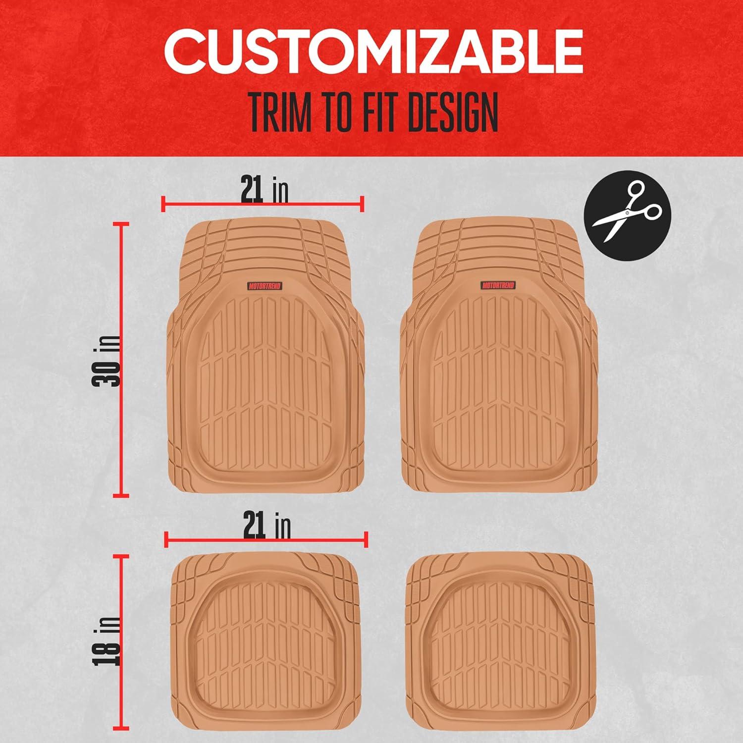 Motor Trend MT-921-BK FlexTough Tortoise - Heavy Duty Rubber Floor Mats for Car SUV Van & Truck - All Weather Protection - Deep Dish (Black)(Beige)