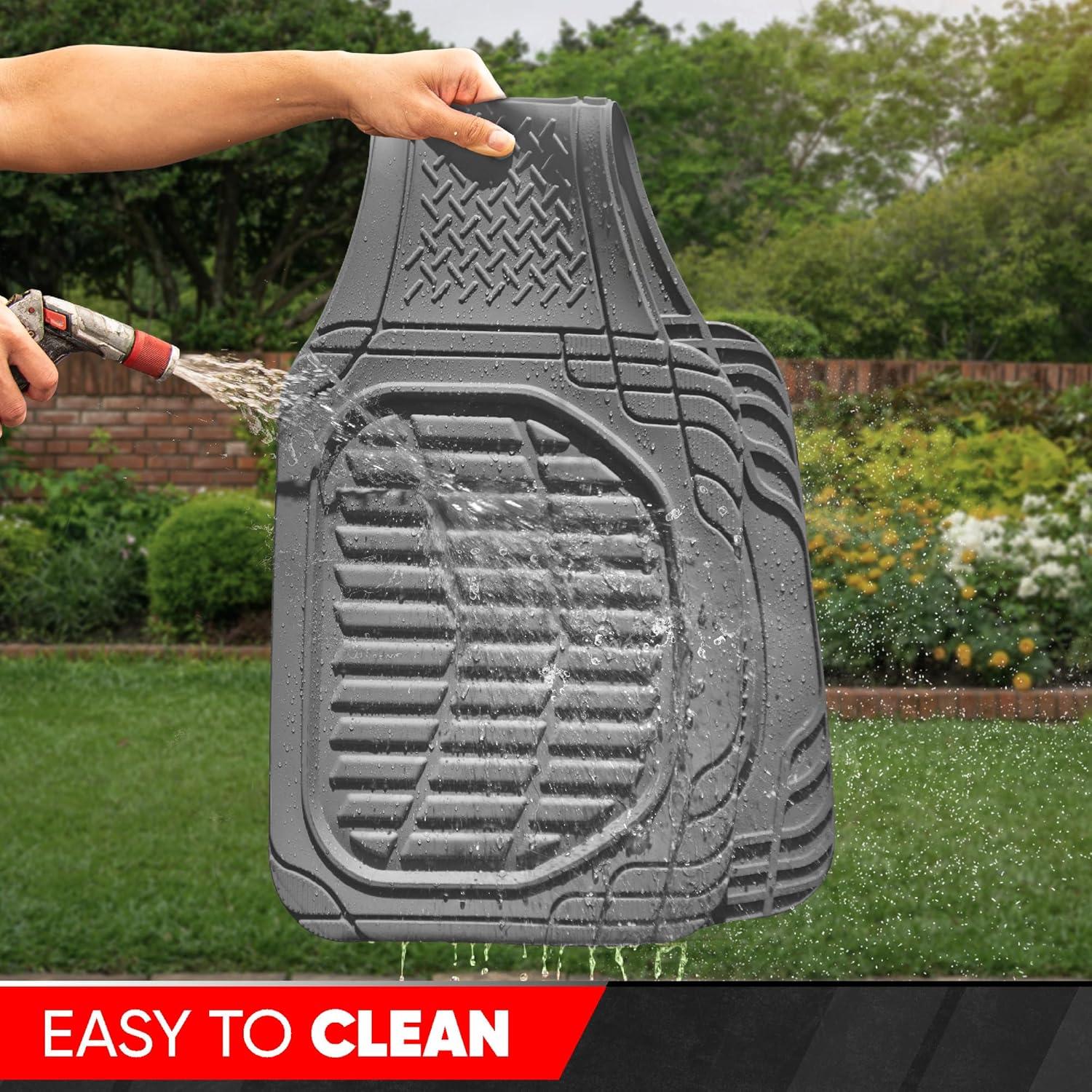 ALL-WEATHER DEFENSE – Built to handle mud, snow, rain, and road salt. These mats are engineered from waterproof and stain-resistant rubber polymers that trap debris and moisture before it damages your vehicle’s interior. Anti-skid backing keeps them firmly in place without shifting.