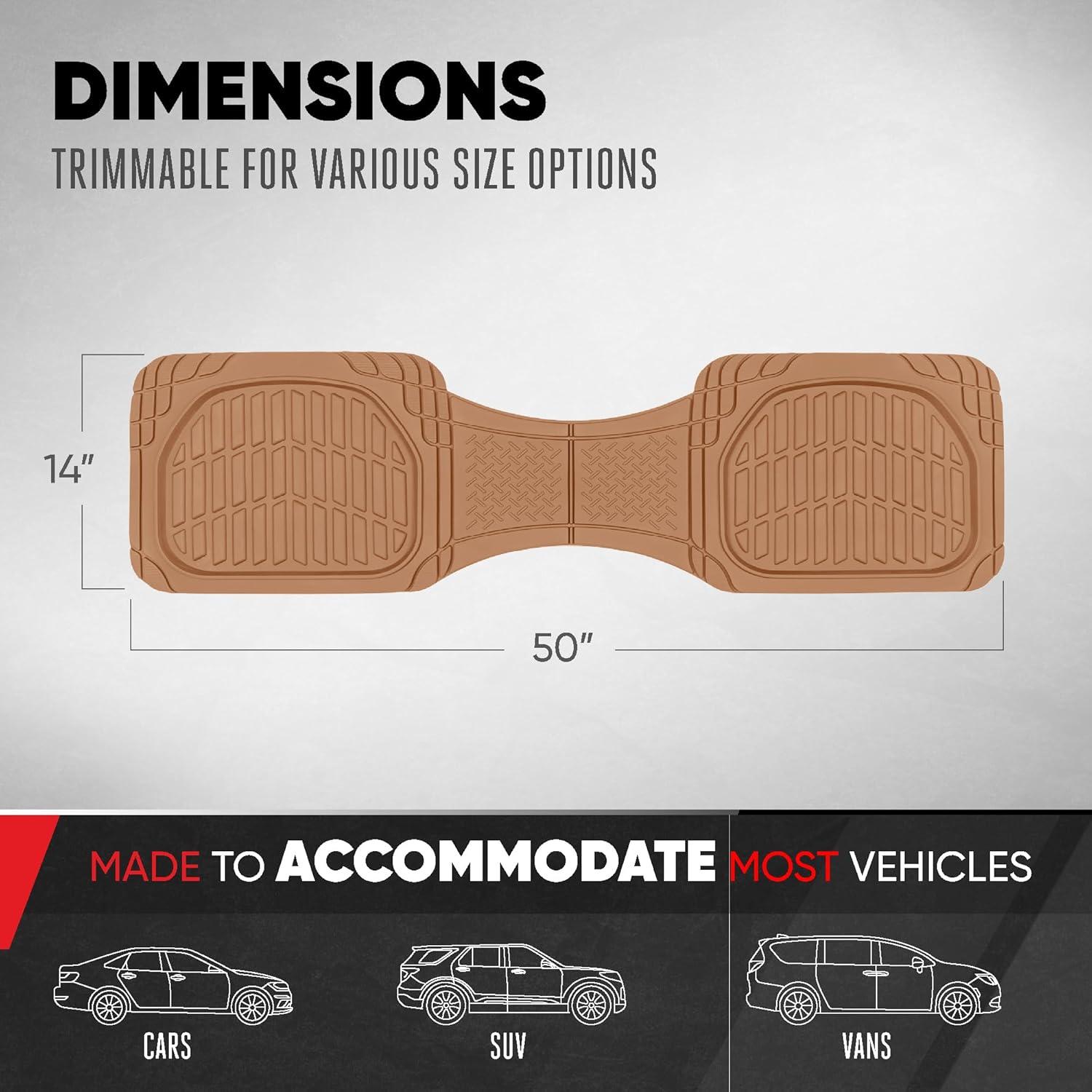 Take on any weather with confidence using the Motor Trend Premium FlexTough Deep Dish Rear Rubber Floor Mat Liners. Engineered for maximum interior protection, these heavy-duty car mats are built to withstand everything from muddy shoes and snowy boots to accidental spills and pet messes. Made from high-strength rubber polymers, they provide rugged durability while remaining flexible and easy to trim for a perfect fit.