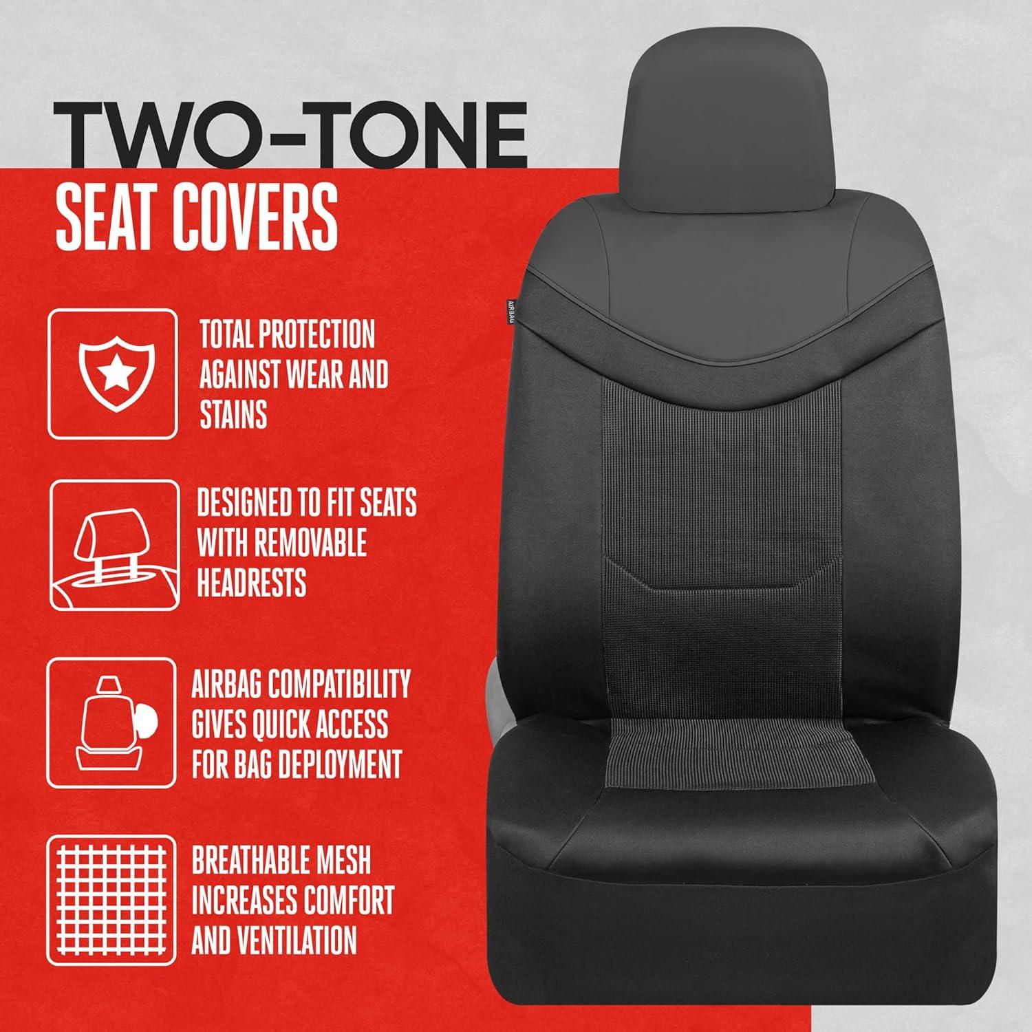 Motor Trend Premium LuxeSport Gray Car Seat Covers for Front Seats – Premium Seat Protectors with Comfortable Mesh Back & Faux Leather Headrest, Interior Accessories for Car Truck Van SUV