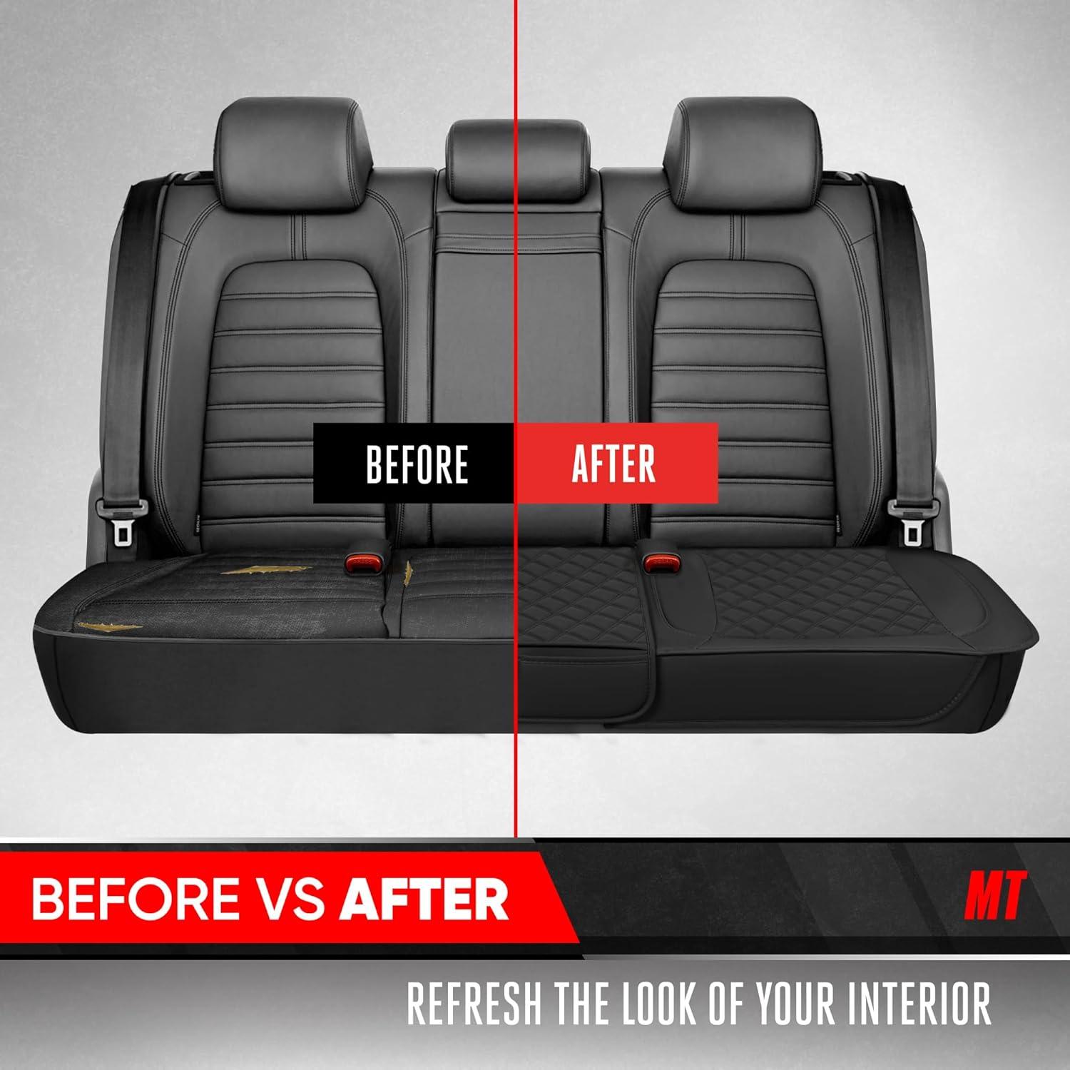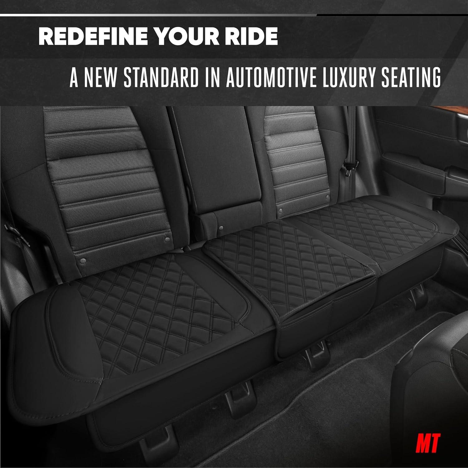 Motor Trend Rear Seat Cushion - Black Diamond Stitched Faux Leather Rear Seat Cover for Cars, Trucks, SUVs - Padded, Waterproof, Non-Slip Back Seat Cover with Storage Pockets(Black)