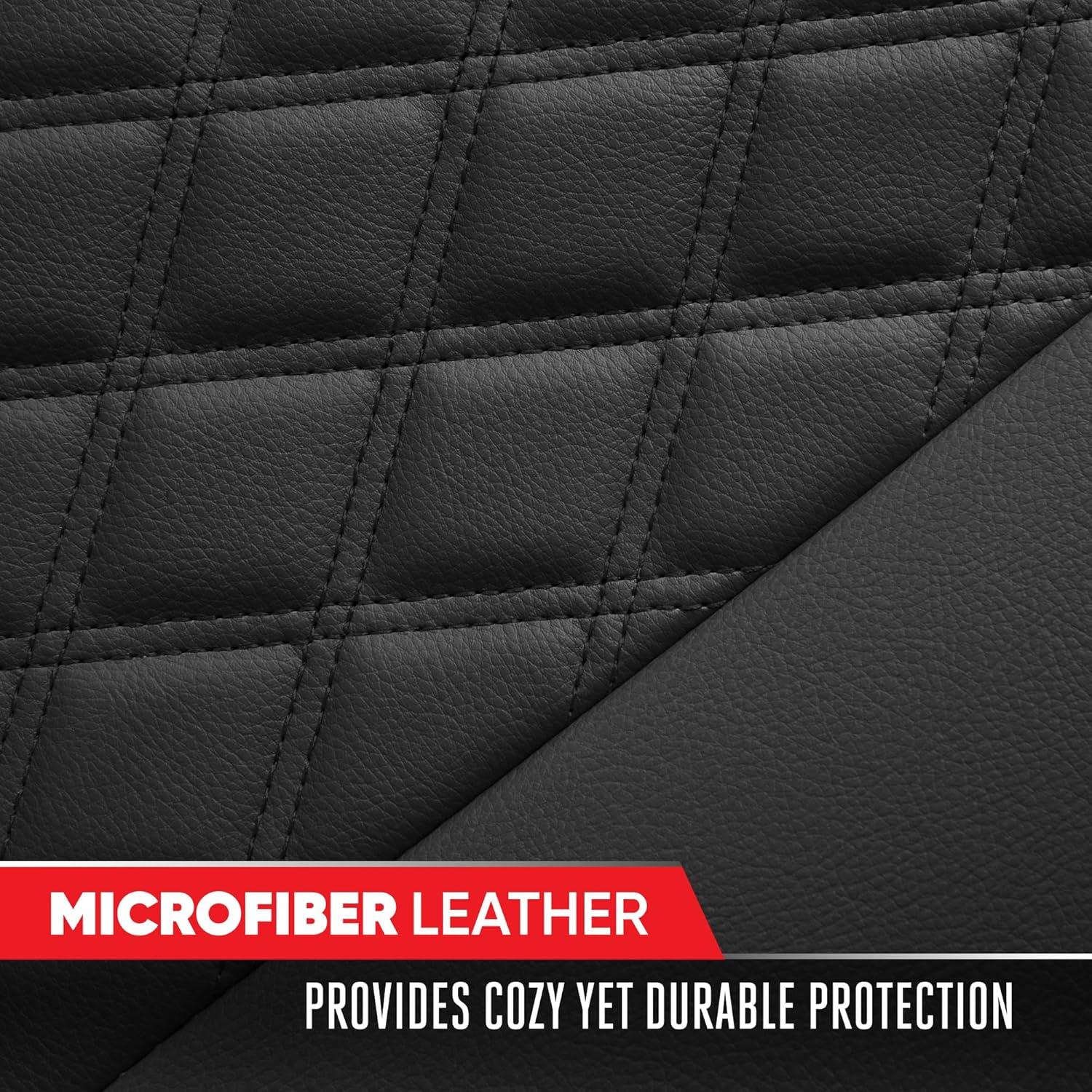 Motor Trend Rear Seat Cushion – Black Diamond Stitched Faux Leather Rear Seat Cover for Cars, Trucks, SUVs – Padded, Waterproof, Non-Slip Back Seat Cover with Storage Pockets(Black Front Seats)