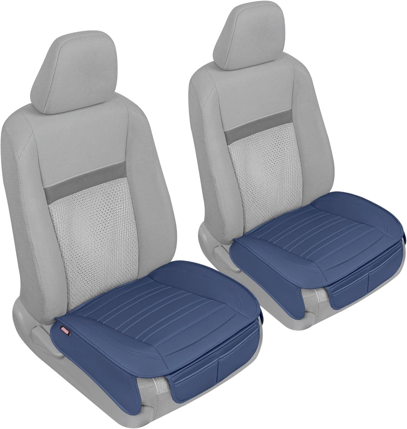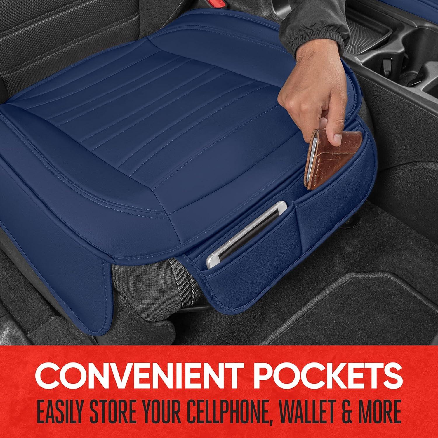 Motor Trend Rear Seat Cushion – Black Diamond Stitched Faux Leather Rear Seat Cover for Cars, Trucks, SUVs – Padded, Waterproof, Non-Slip Back Seat Cover with Storage Pockets(Blue Front Seats)