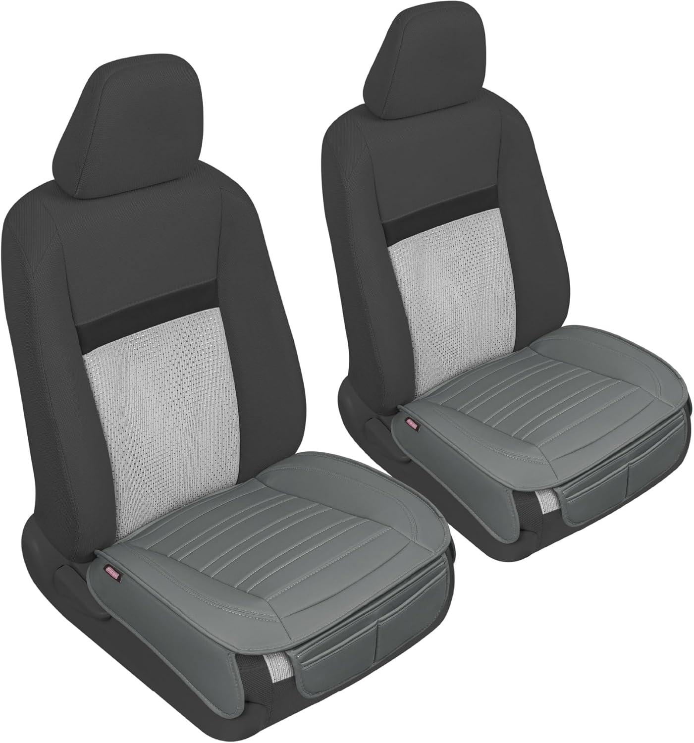 Motor Trend Rear Seat Cushion - Black Diamond Stitched Faux Leather Rear Seat Cover for Cars, Trucks, SUVs - Padded, Waterproof, Non-Slip Back Seat Cover with Storage Pockets(Charcoal Gray Front Seats)