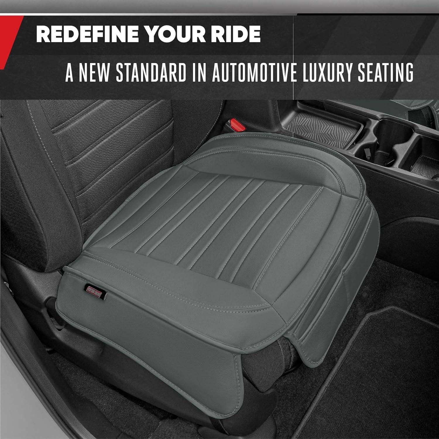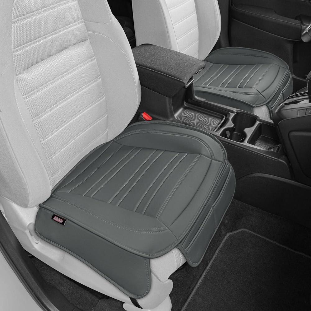 imageMotor Trend Rear Seat Cushion  Black Diamond Stitched Faux Leather Rear Seat Cover for Cars Trucks SUVs  Padded Waterproof NonSlip Back Seat Cover with Storage PocketsCharcoal Gray Front Seats
