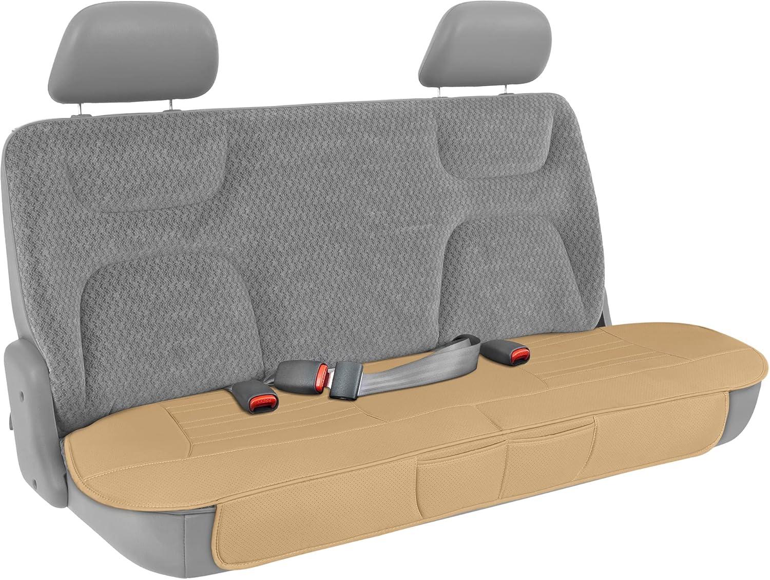 Motor Trend Seat Covers for Cars Trucks SUV, Faux Leather Full Set Black Padded Car Seat Covers with Storage Pockets, Premium Interior Car Seat Cover(Tan Beige)